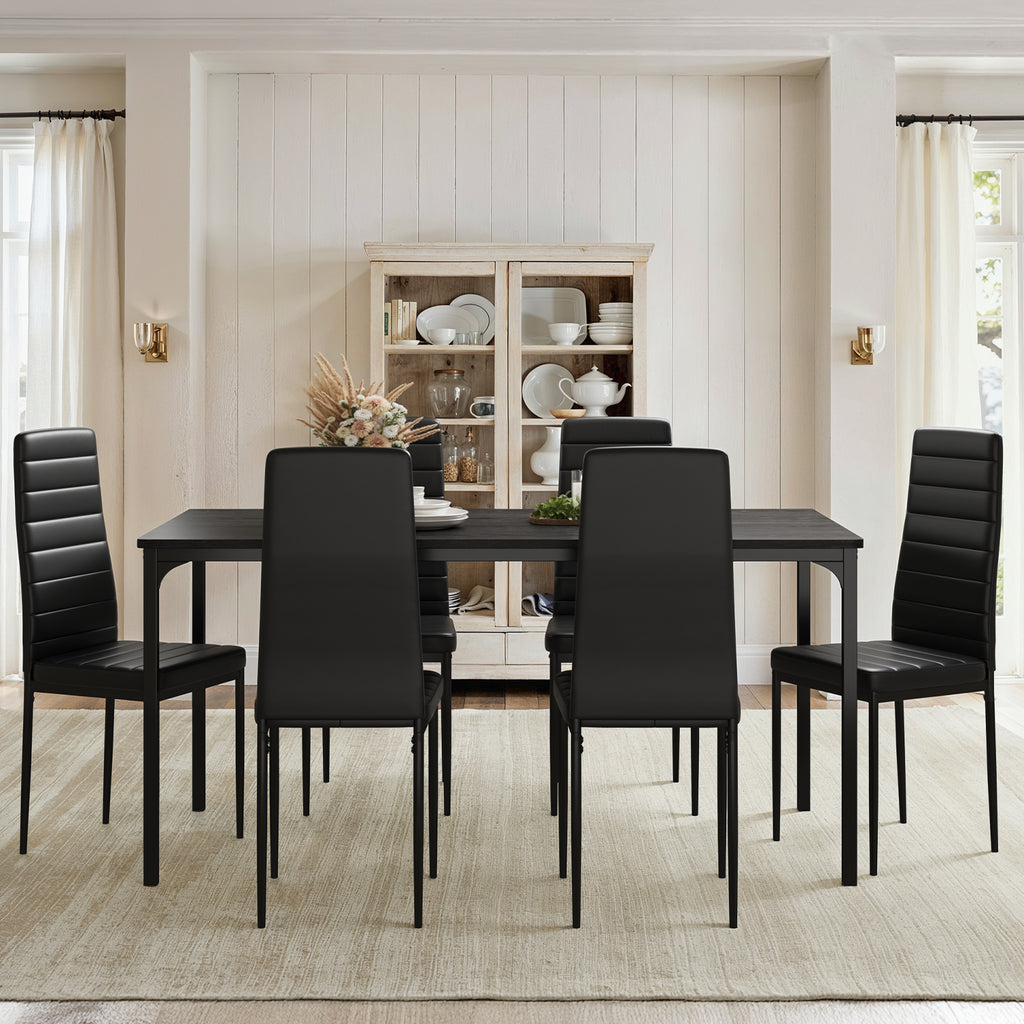 Dining Room Table Set for 6, Asofer Kitchen Table Set with Upholstered PU Leather Chairs for Kitchen Room, Living Room, Apartment, Black