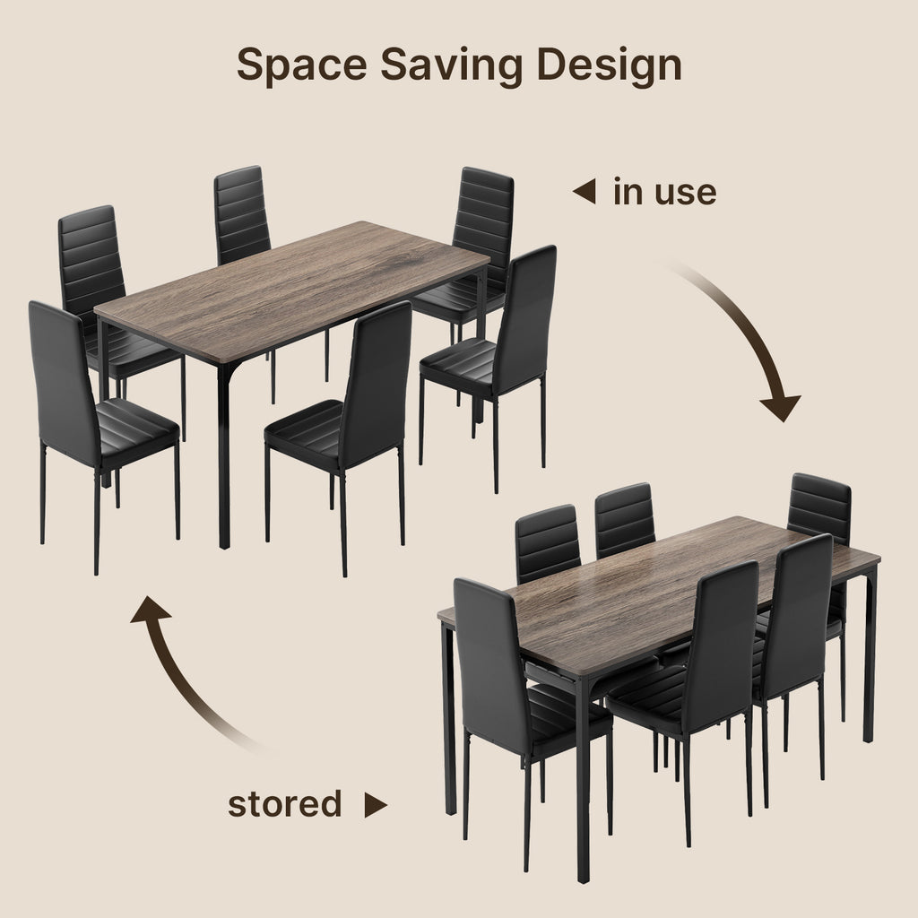 Dining Room Table Set for 6, Asofer Kitchen Table Set with Upholstered PU Leather Chairs for Kitchen Room, Living Room, Apartment, Gray