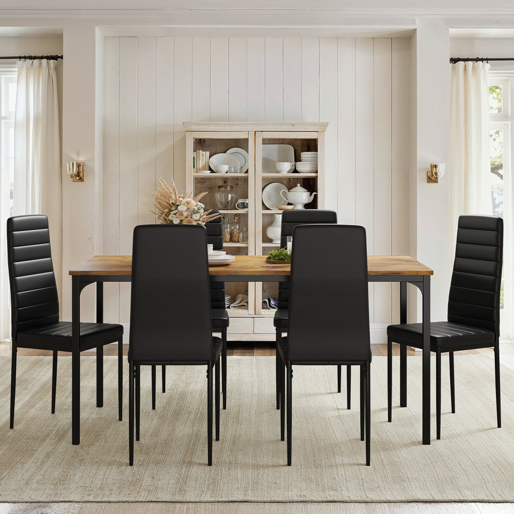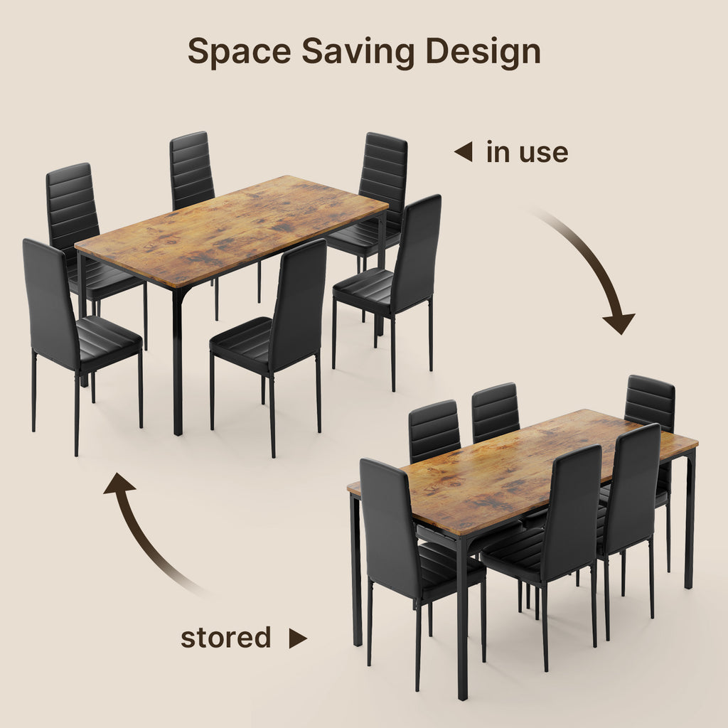 Dining Room Table Set for 6, Asofer Kitchen Table Set with Upholstered PU Leather Chairs for Kitchen Room, Living Room, Apartment, Retro