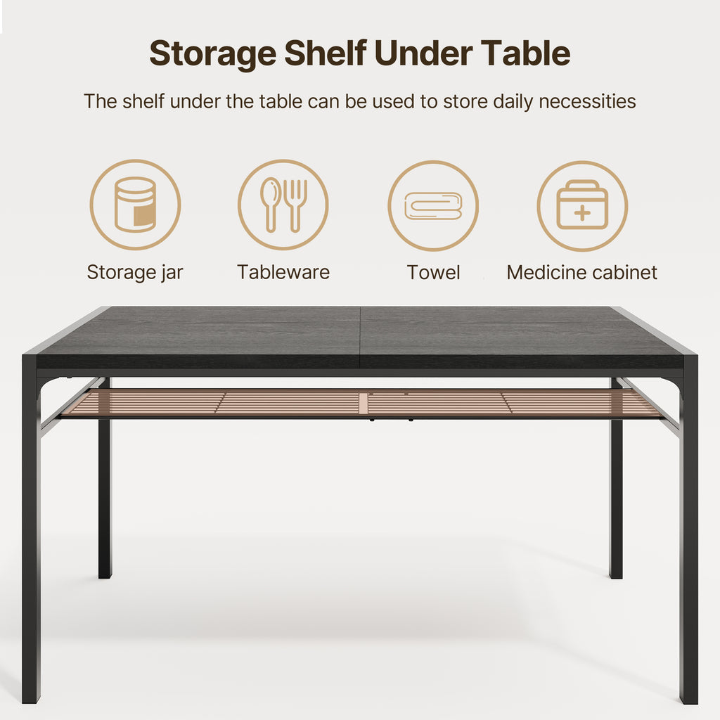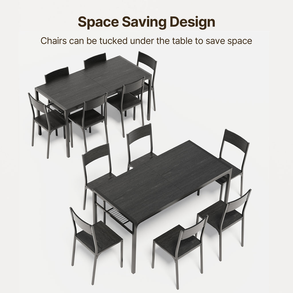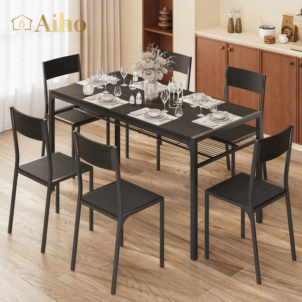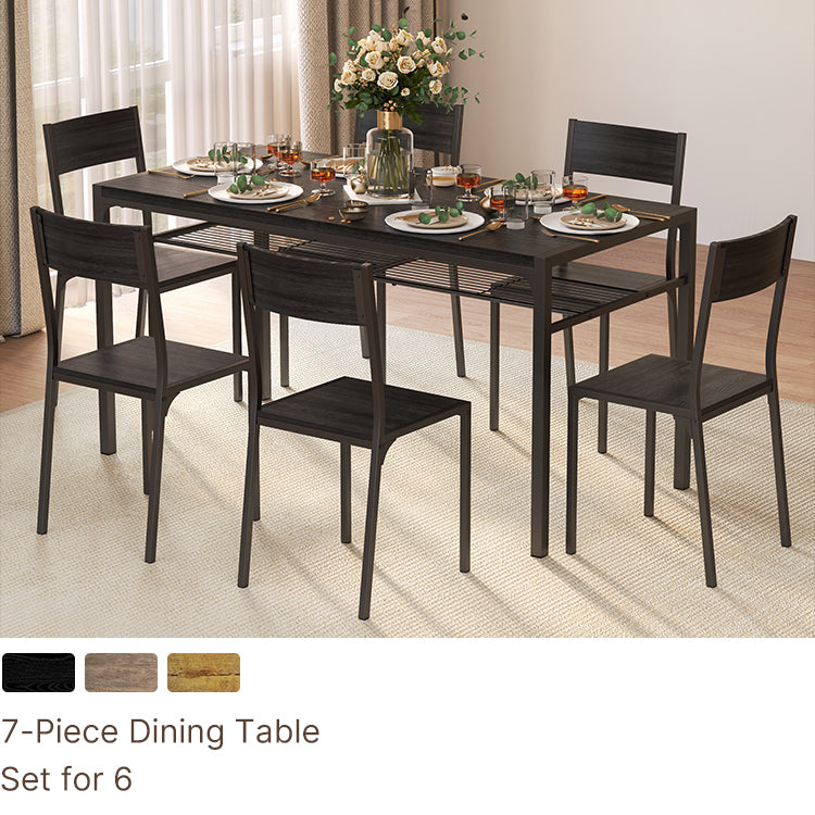 Dining Table Set for 6 , 7-Piece Kitchen Table Set for Small Space, Apartment, Kitchen, Dining Room, Space-Saving - Black