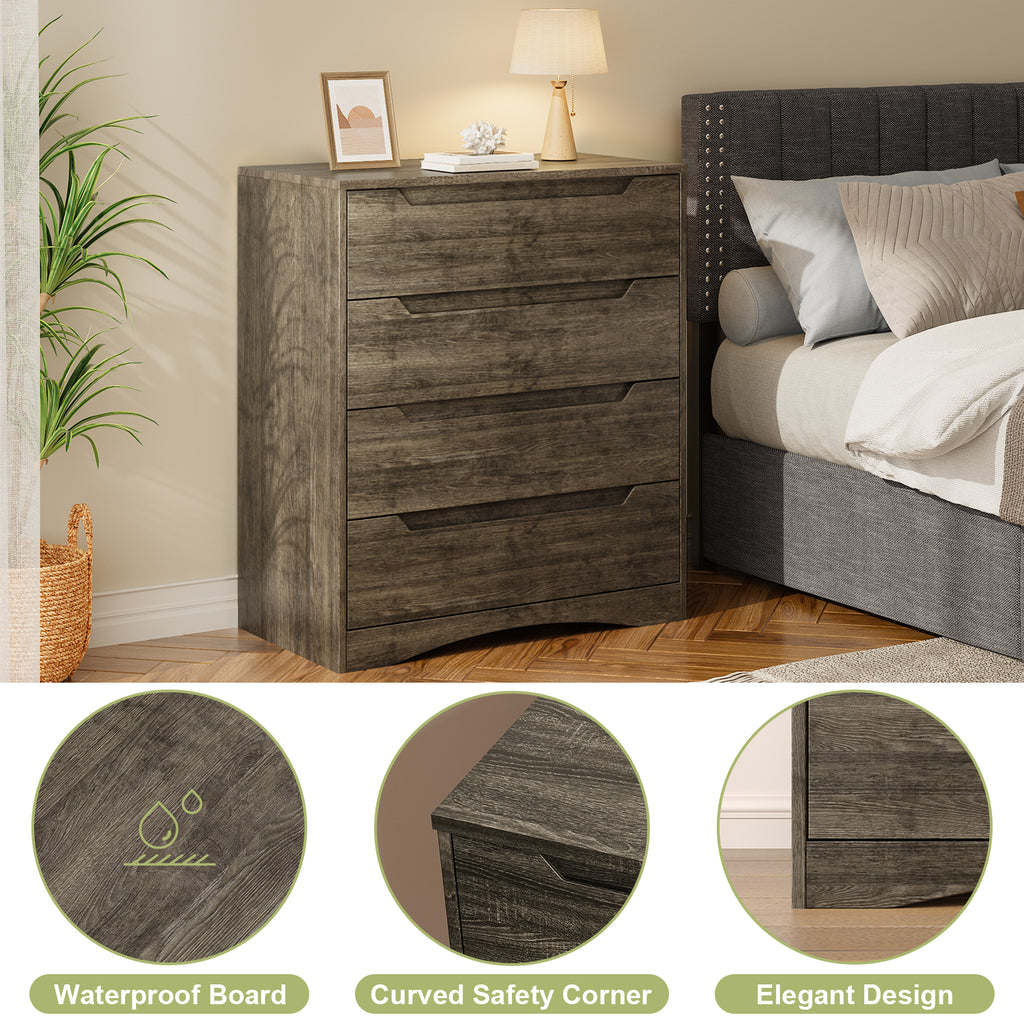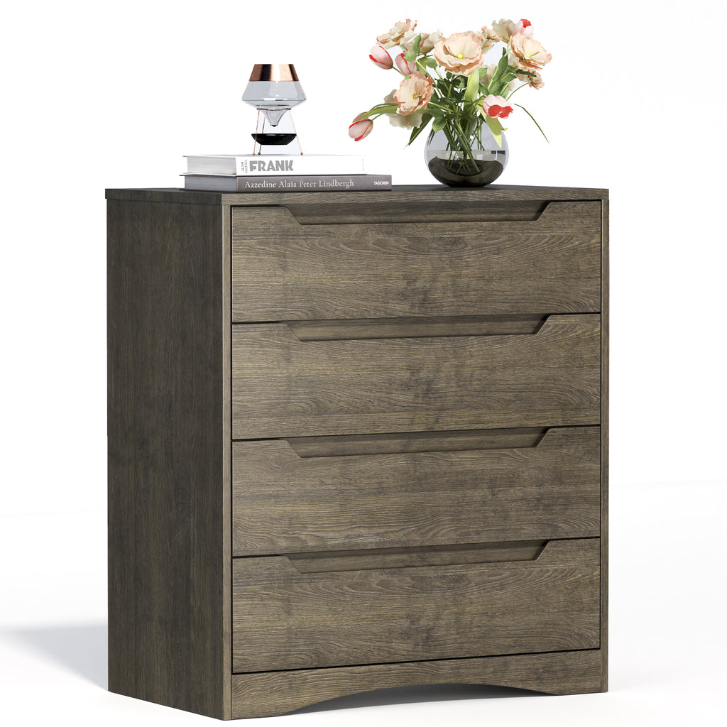 Dresser with 4 Drawers, Wood Tall Chest, Built-in Handle Drawers for Bedroom, Home, Living Room, Hallway - Gray