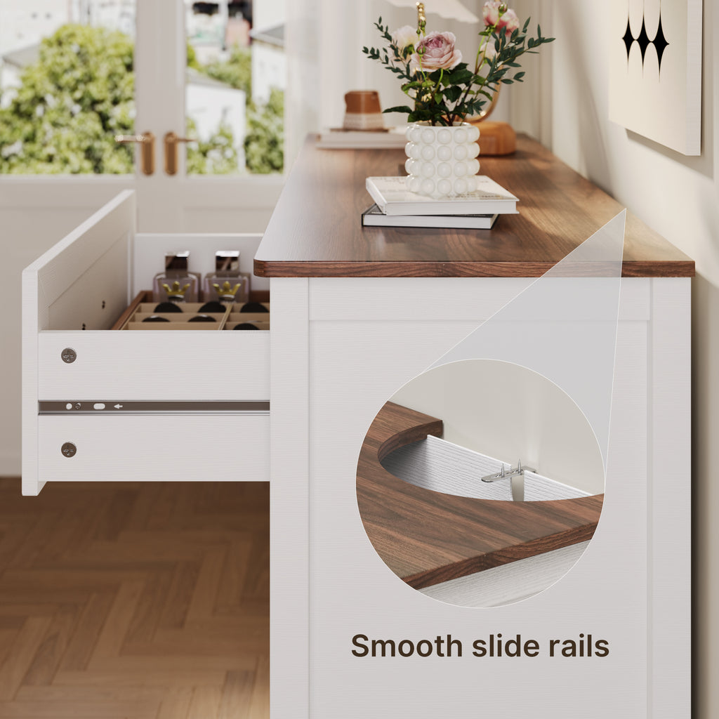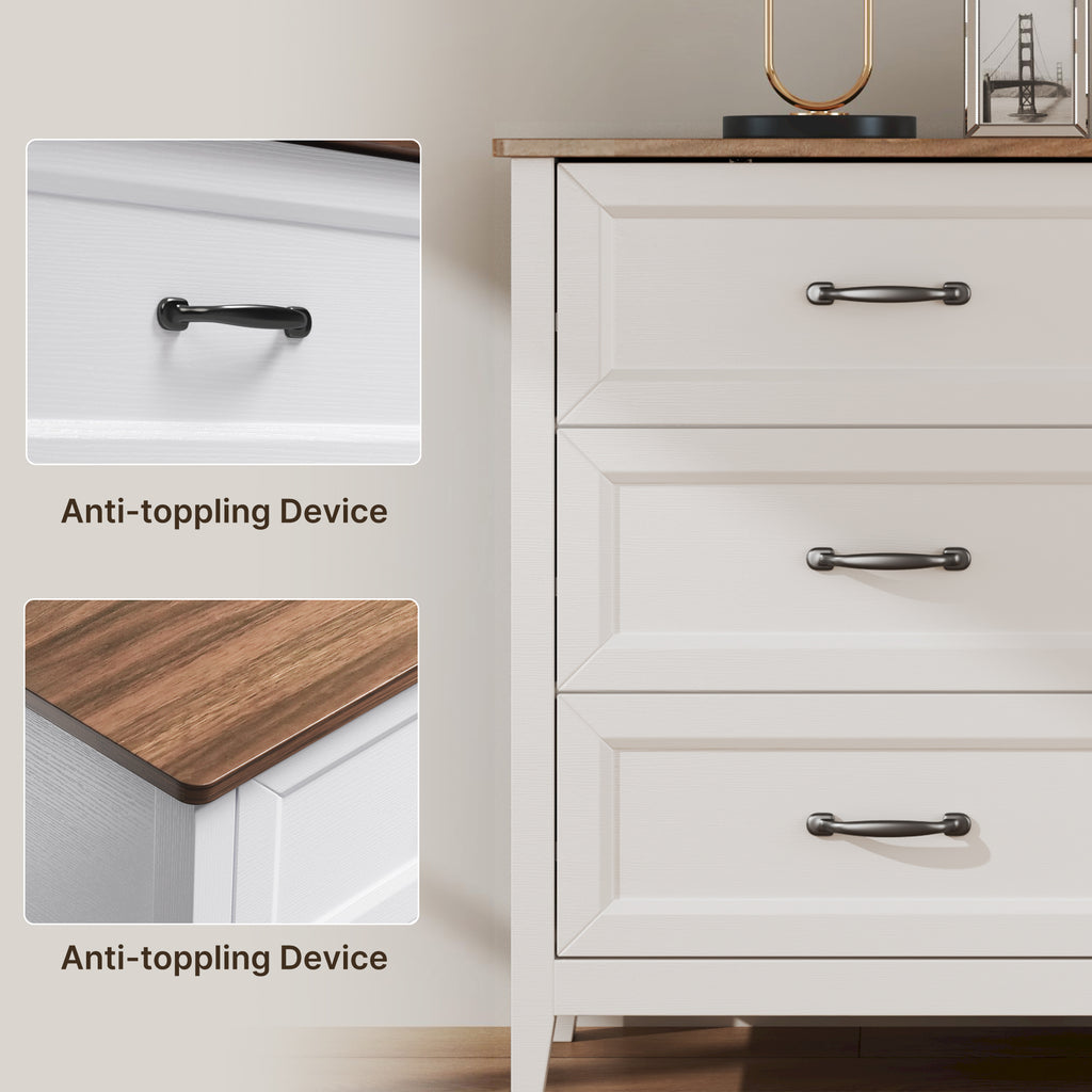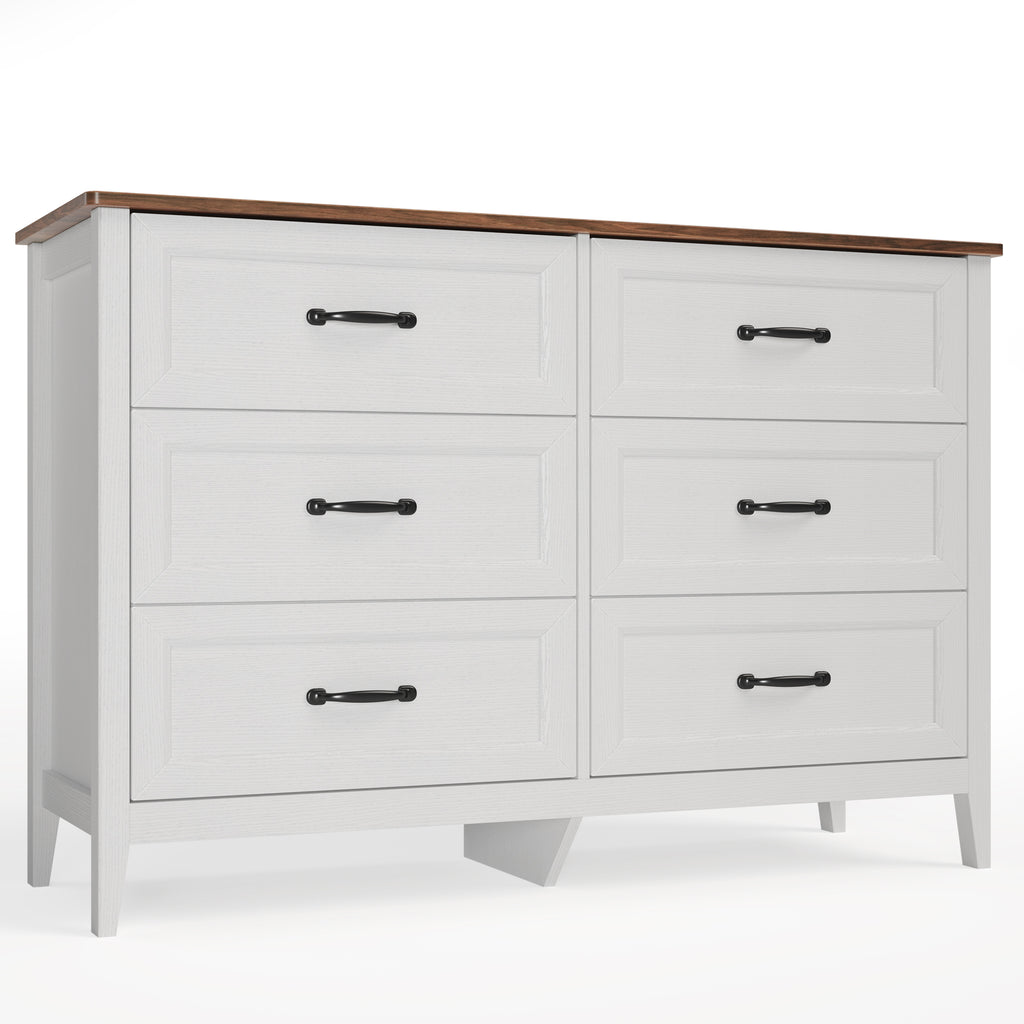 Farmhouse Dresser for Bedroom, 47.2" Wide 6 Drawer Dresser Storage Organizer, Wood Chest of Drawers for Bedroom, TV Stand for 50 inch TV, for Living Room, Hallway - Retro Desktop