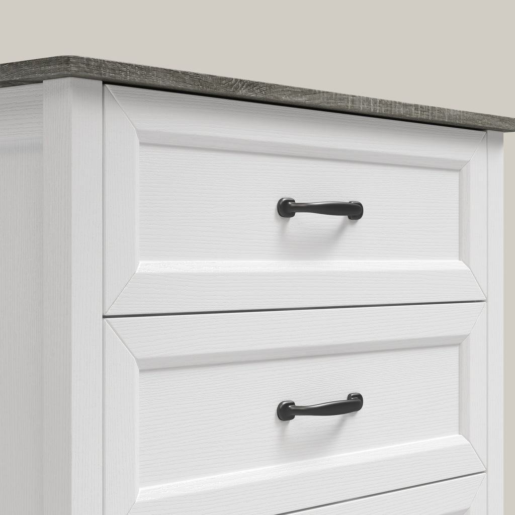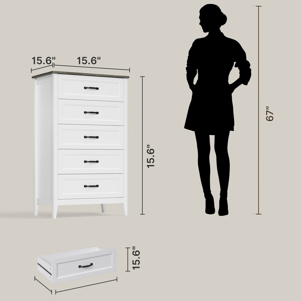 Add rustic warmth to your bedroom with the Aiho Farmhouse Dresser. Tall wooden five drawer design is both practical and beautiful, suitable for bedroom, living room, hallway or closet. The metal handles add a touch of modernity to the whole, perfectly blending vintage and fashion for a neat and organized space. Whether you are storing clothes, supplies or decorations, this multi-functional chest of drawers is ideal.