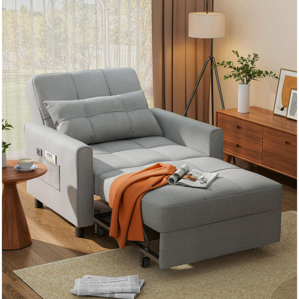 Futon Sofa Bed, Lofka 3-in-1 Convertible Sleeper Chair with Pull Out Couch for Living Room, Bedroom, Light Gray