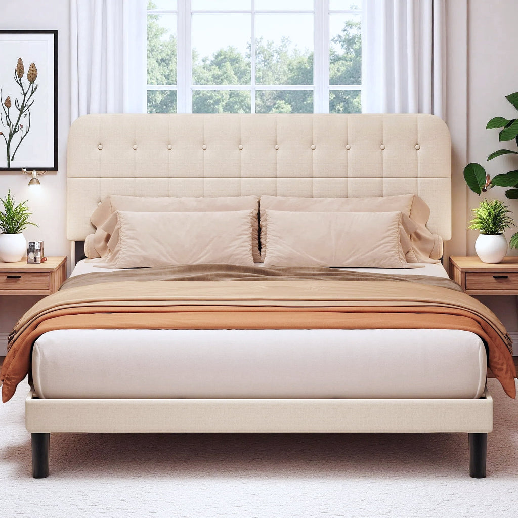 King Bed Frame and Headboard, Lofka King Platform Bed Frame with Sturdy Wooden Slats Support, Noise Free/Easy Assembly, Beige