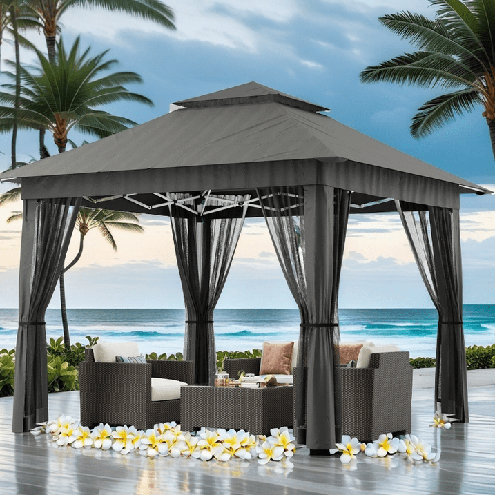 Lofka 11X11ft Outdoor Gazebo Clearance,Pop-Up Outdoor Gazebo with Mosquito Net, Adjustable Height,Gray