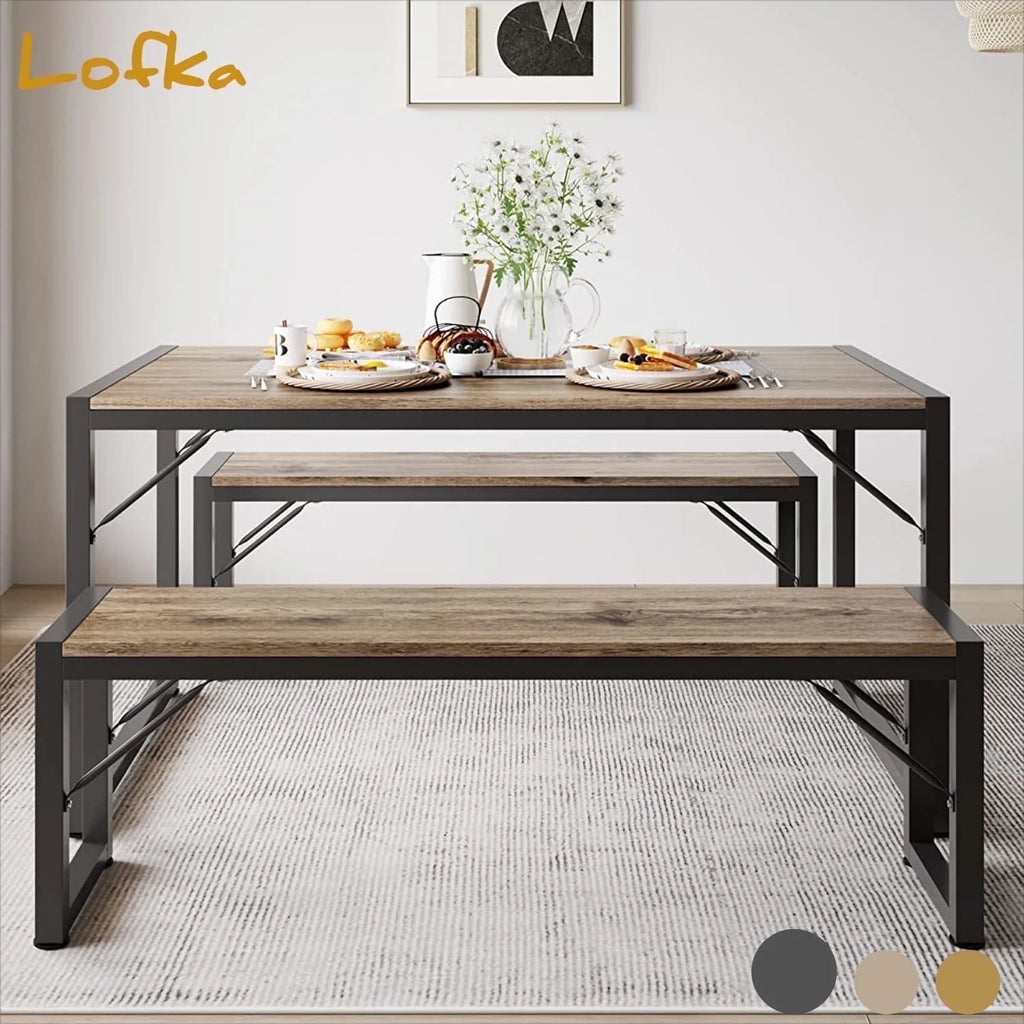 Get ready to enhance your dining experience with Lofka's 3-piece dining table set! This spacious set features a table and two large benches, accommodating 4-6 people for enjoyable meals together. Furthermore, the benches can be conveniently tucked under the table when not in use, making it ideal for small spaces.