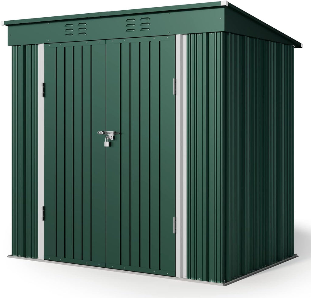 Lofka 6 x 4 ft. Outdoor Metal Storage Shed with Lockable Doors & Updated Frame for Backyard, Garden, Green