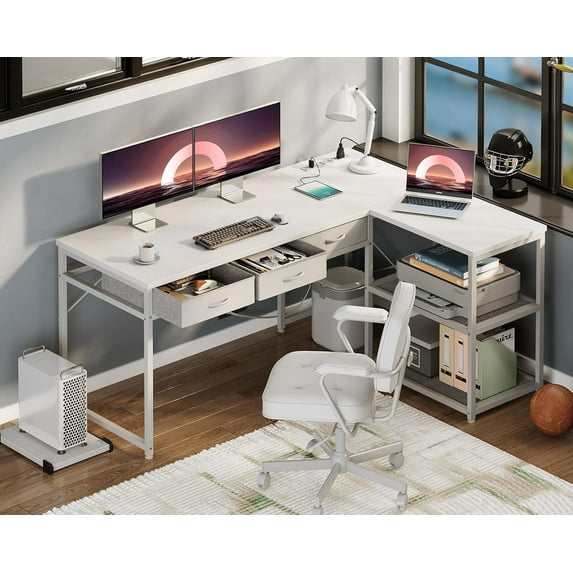 Ideal for small spaces! This white L-shaped desk fits snugly in any corner and offers loads of storage. Use it as a computer desk, writing station, or command center¡ªit¡¯s sturdy, stylish, and super functional.