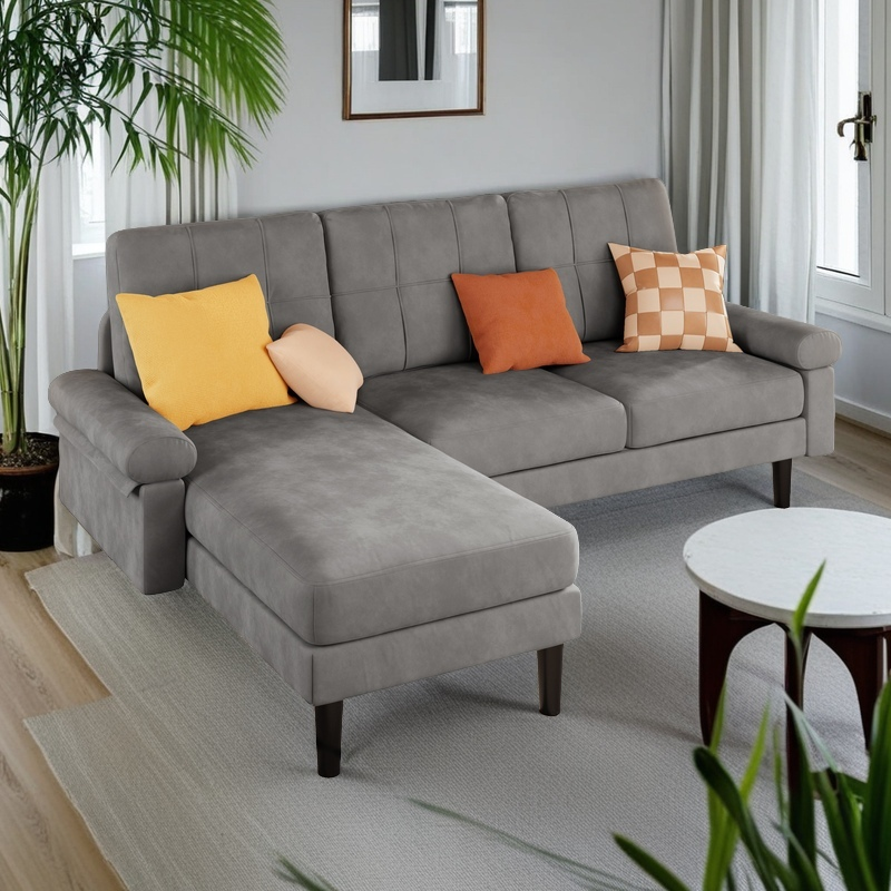 Lofka 82 Inch Modern Convertible Sectional Sofa, L-shaped Small Couch with Extra Deep Seats for Living Room, Apartments, Offices,Gray