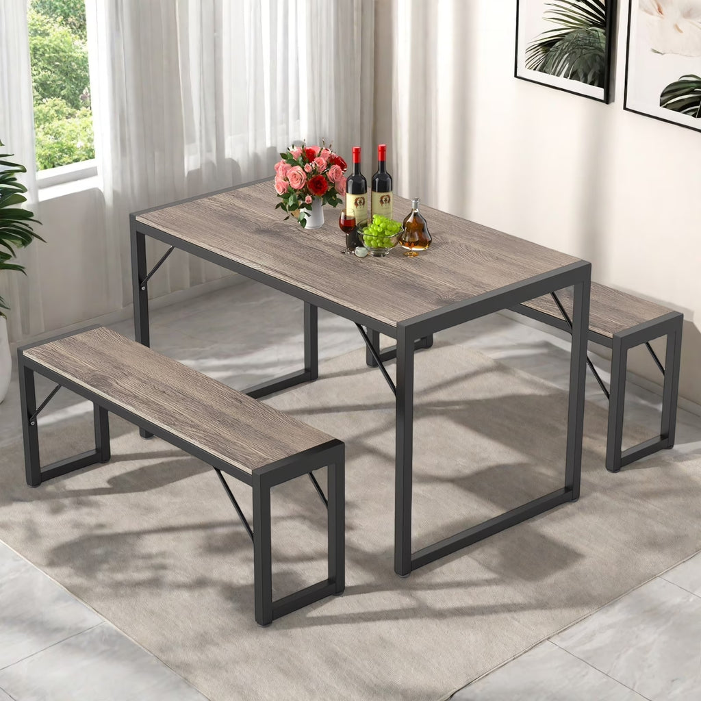 Lofka Dining Table Set for 4, Kitchen Table Set with 2 Benches, for Breakfast Nook and Small Space, Grey