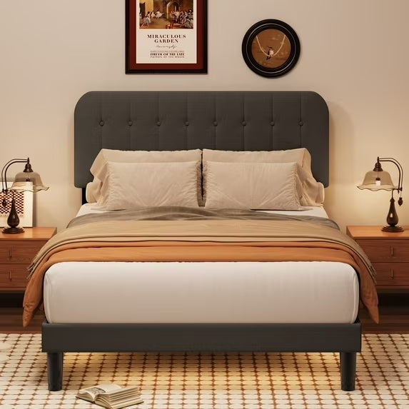 🌇 Lofka Full Size Bed Frame with Upholstered Adjustable Headboard-Dark Gray