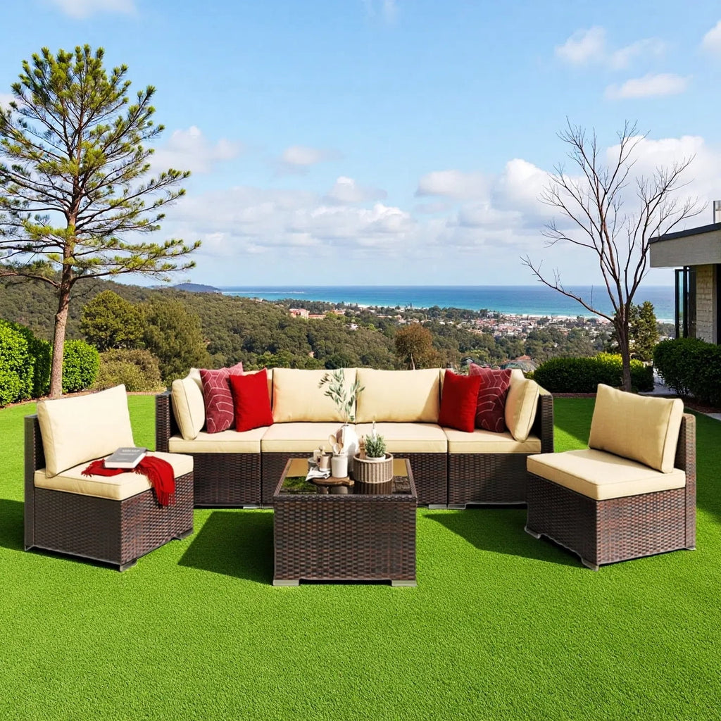 Lofka Patio Furniture Set, Outdoor Sectional Furniture Sofa Set with Tempered Glass Table for Garden