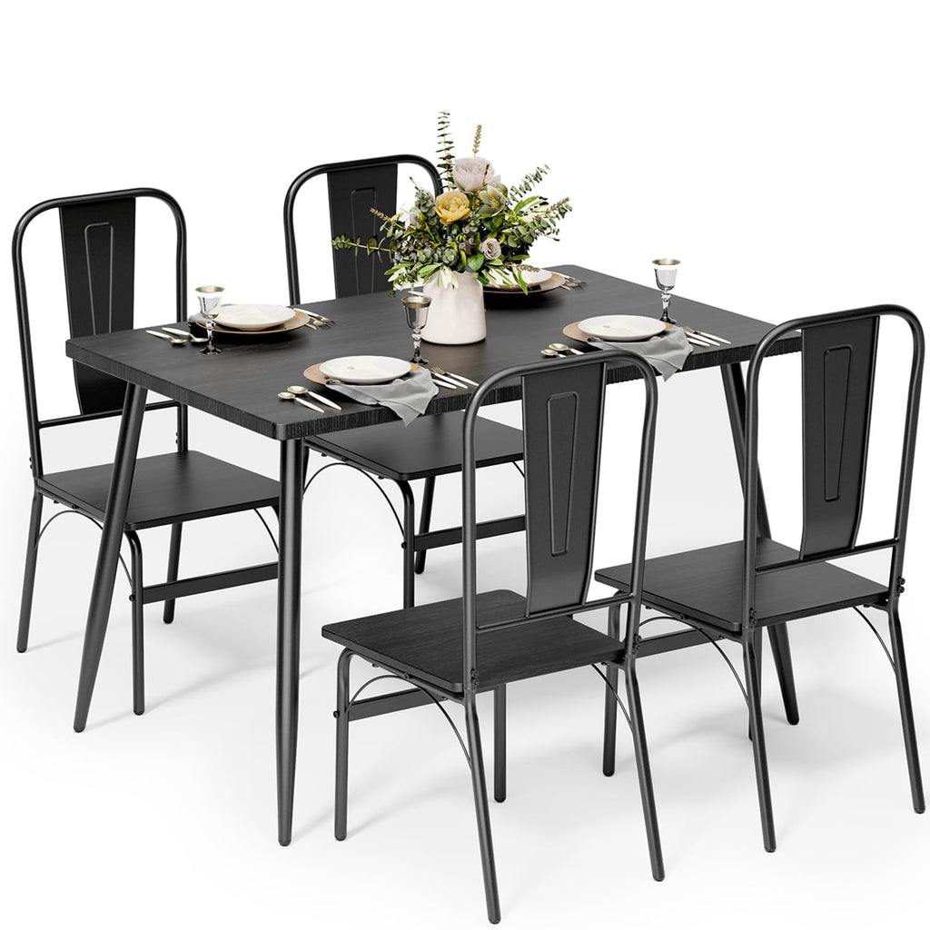 Modern Kitchen Table Set for 4 with 1 Table & 4 Chairs, Lofka Small Dining Room Set for Small Spaces, Black