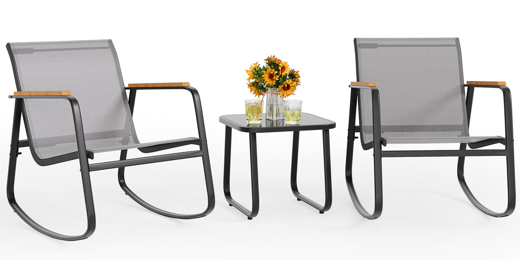 Noelse 3 Piece Outdoor Textilene Rocking Bistro Set, Patio Furniture Set with Heat-Resistant Armrests and Coffee Table for Porch, Balcony,Black
