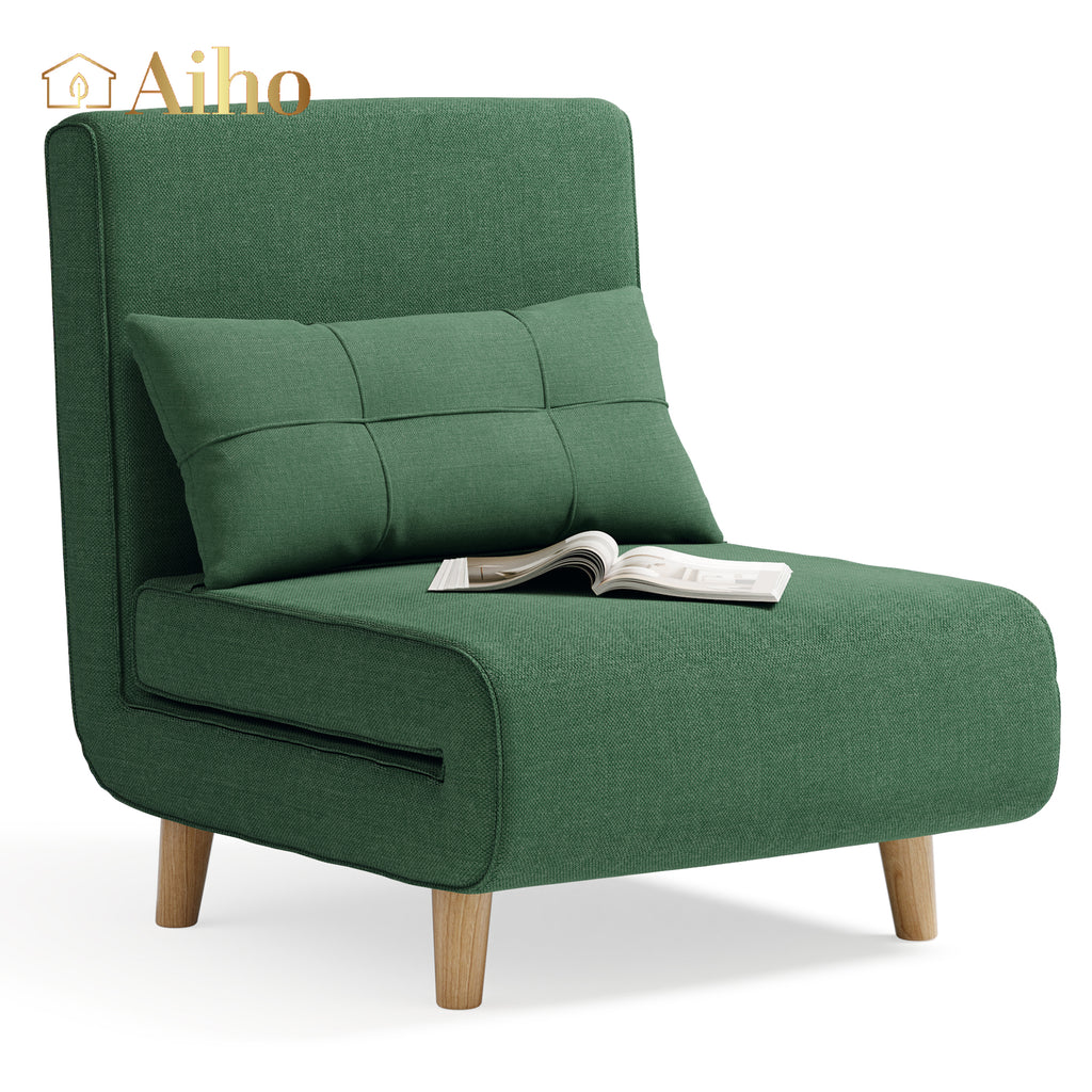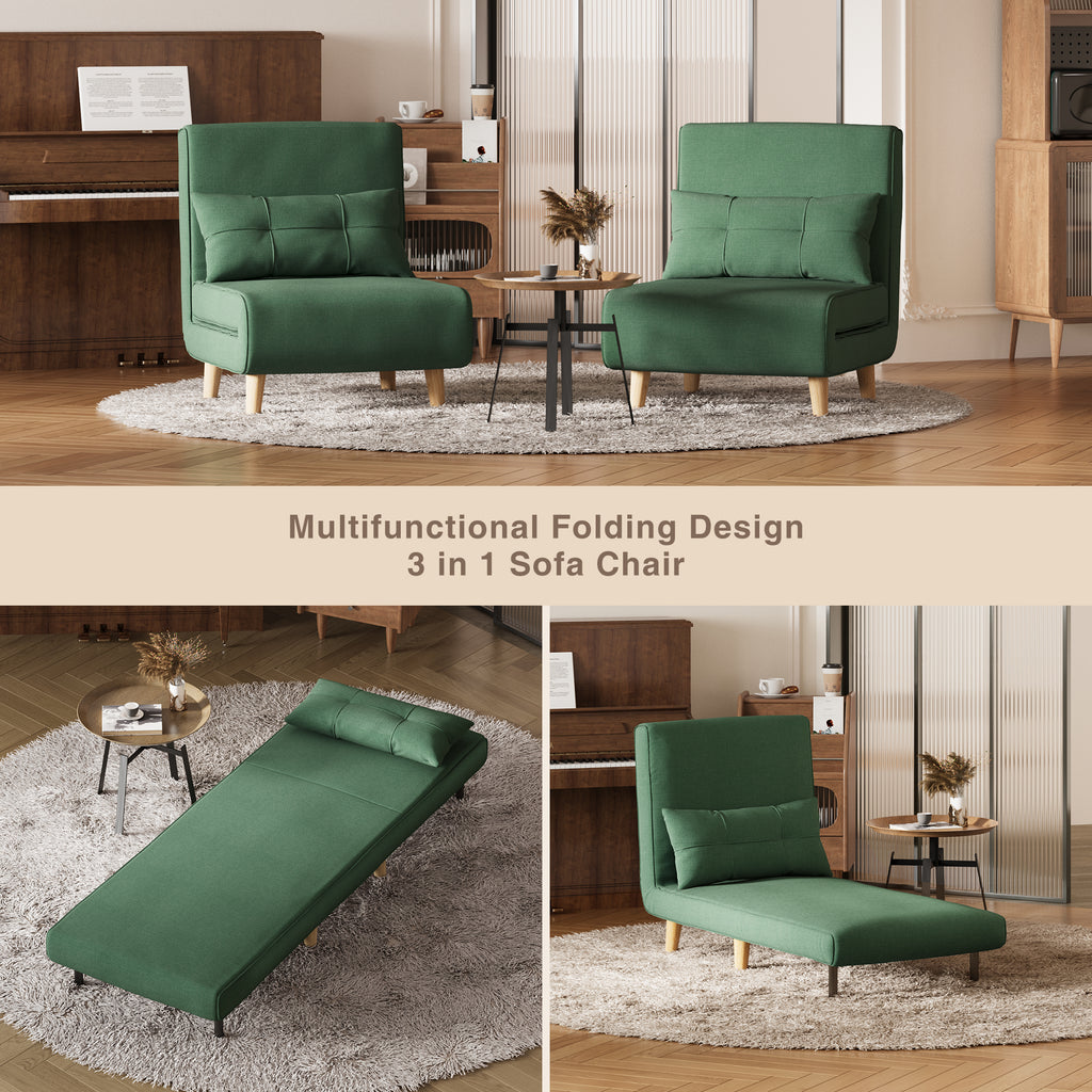 Convertible Chair Bed Futon Sofa with Adjustable Backrest, Accent Chair for Apartment, Bedroom, Office - Green
