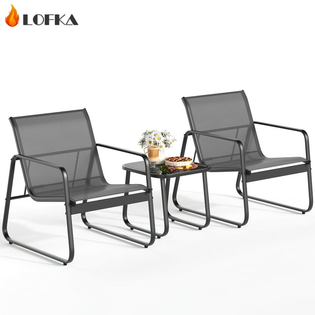 Outdoor Furniture Sets Clearance, Lofka Patio Chairs Set with Tempered Glass Coffee Table with Cool Textile Fabric Seats for Patio, Lawn, Garden, Balcony, Porch