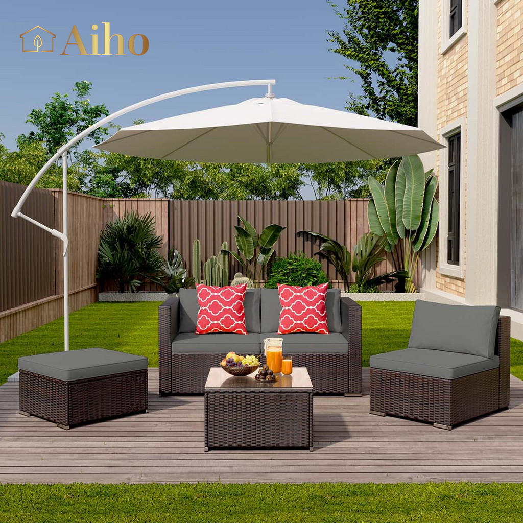 Aiho All-Weather 5 Pieces Outdoor Sectional Sofa with PE Rattan, Outdoor Patio Furniture Set with Soft Cushions and Coffee Table, For Backyard, Porch, Balcony, Poolside, Garden, Patio-Gray