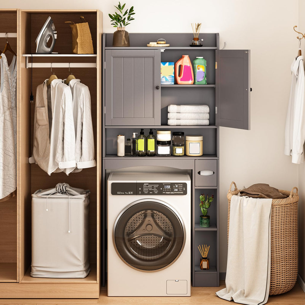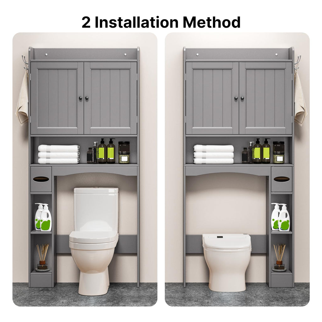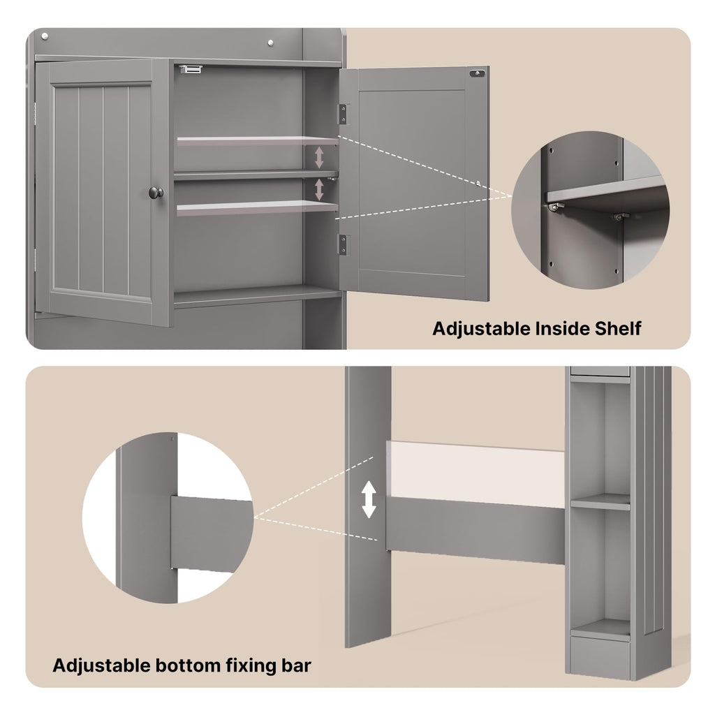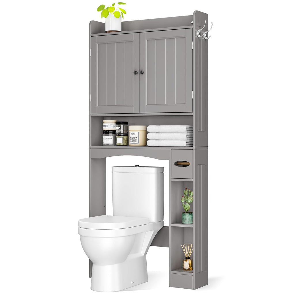 Over the Toilet Storage Cabinet, Aiho 70.3" H Bathroom Storage Cabinet with Adjustable Shelves & 2 Side Hooks, Best Gifts for Bathroom, Small Spaces, Gray