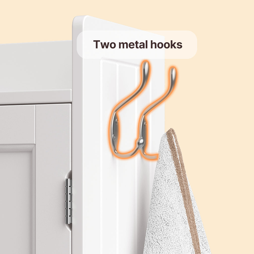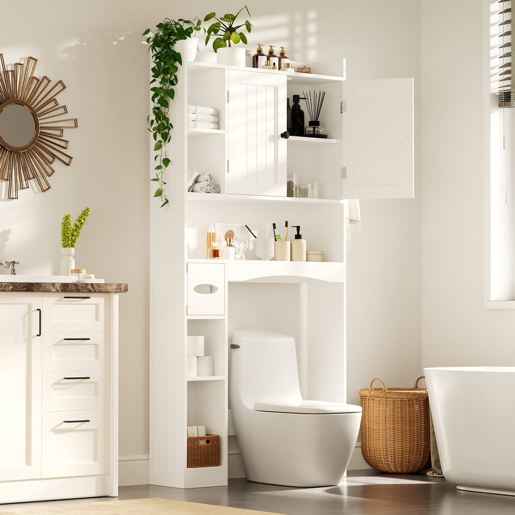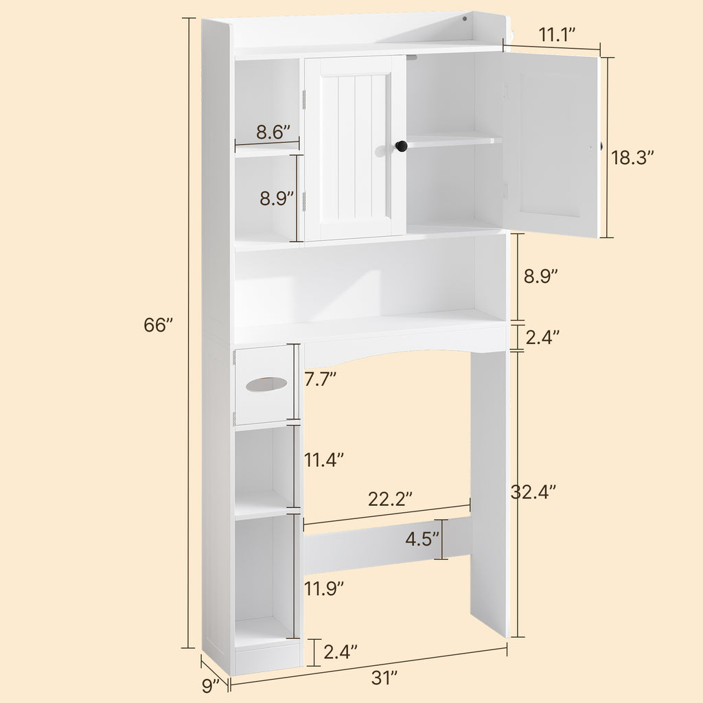 Over The Toilet Storage Cabinet with 2 Doors, Paper Holder and Racks, Adjustable Shelf, Bottom Bar, for Bathroom, Laundry - White