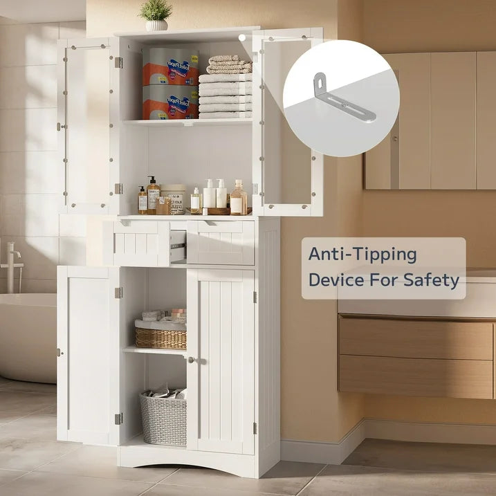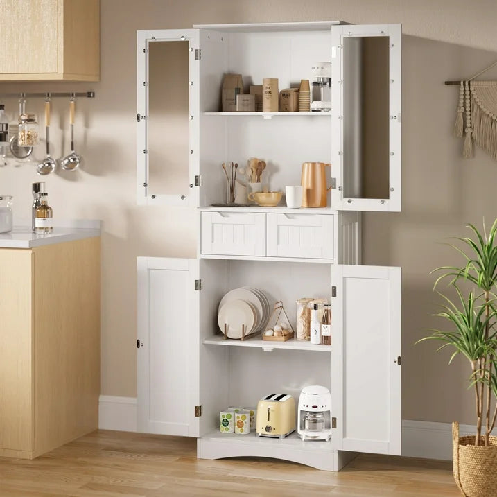✨【Safe and Eco-Friendly】This tall kitchen pantry comes with a bumper to reduce noise when opening and closing the doors. A thoughtful anti-tip device ensures stability. Made from non-toxic materials, it can be safely used in children's rooms, ensuring a healthy environment for your family.