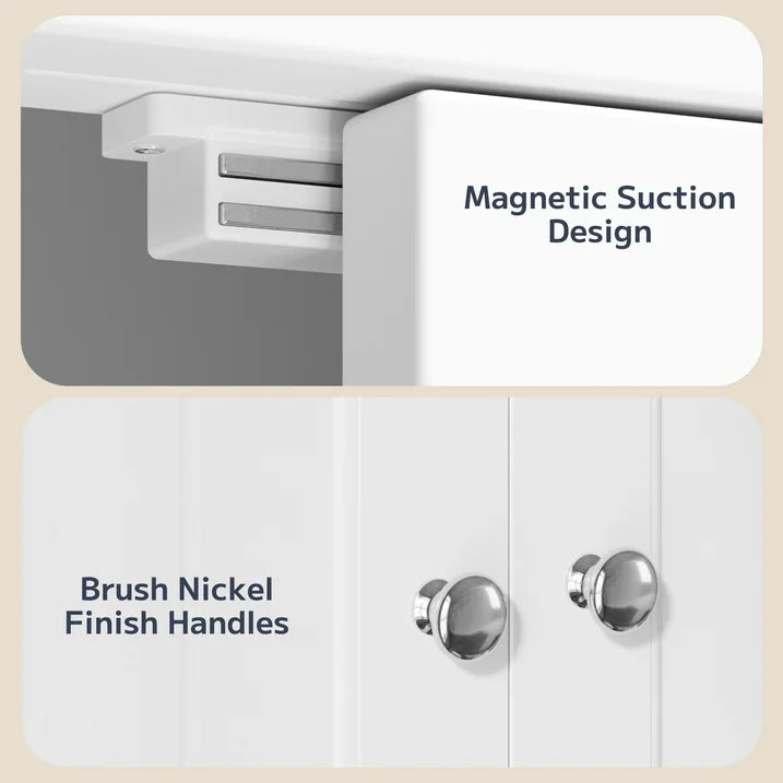 🔸【Magnetic Door + Metal Sliding Rail】The magnetic door allows for smooth opening and closing, especially suitable for shared spaces or rooms that require quiet. The magnetic clasp on the front door keeps it closed when not in use. High-quality metal bearing sliding rails help you easily pull out drawers without making noise.