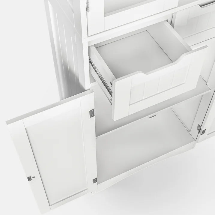 ⛄【Efficient Classification Storage Solution】The separated design makes it easy to organize and categorize, reducing your search time. Each shelf can hold 44 pounds, while each drawer can hold 22 pounds. The storage space hidden behind the doors provides various household storage solutions.