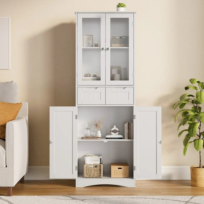 Asofer Freestanding Kitchen Pantry Cabinet with Glass Door