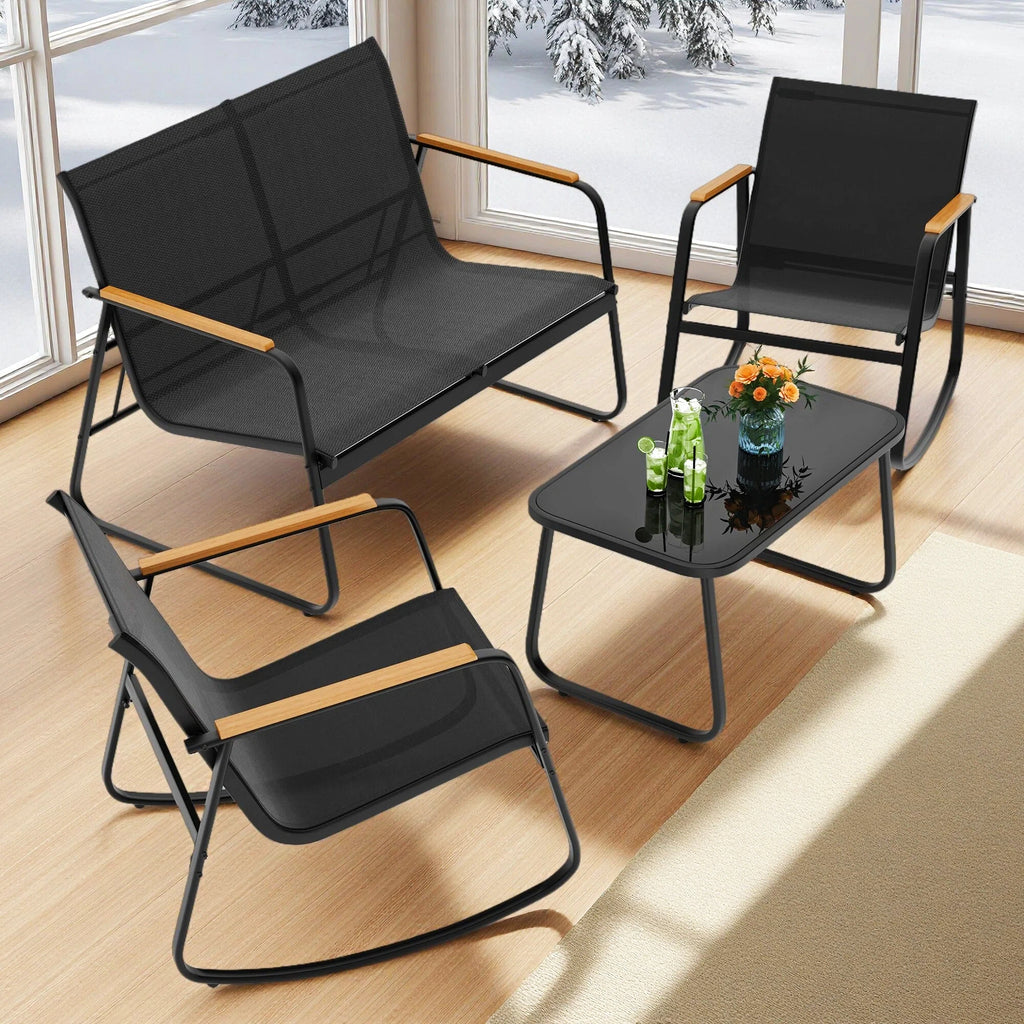 Sway into Seasonless Serenity with Lofka's 4-Piece Rocking Patio Set
