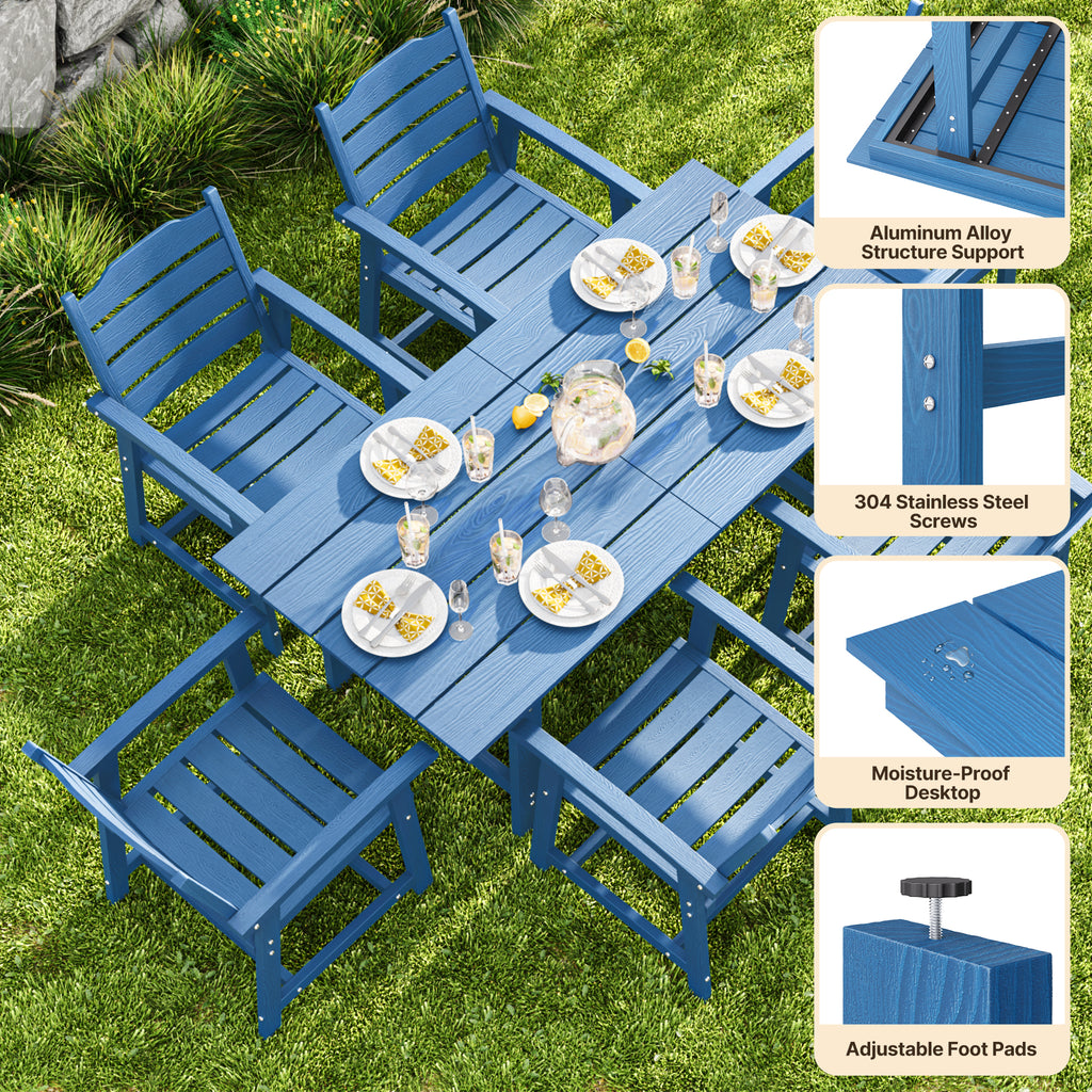 Patio Dining Set, Asofer Outdoor Dining Set for 6 with Umbrella Hole, Waterproof HIPS Material for Garden, Backyard, Lawn, Blue