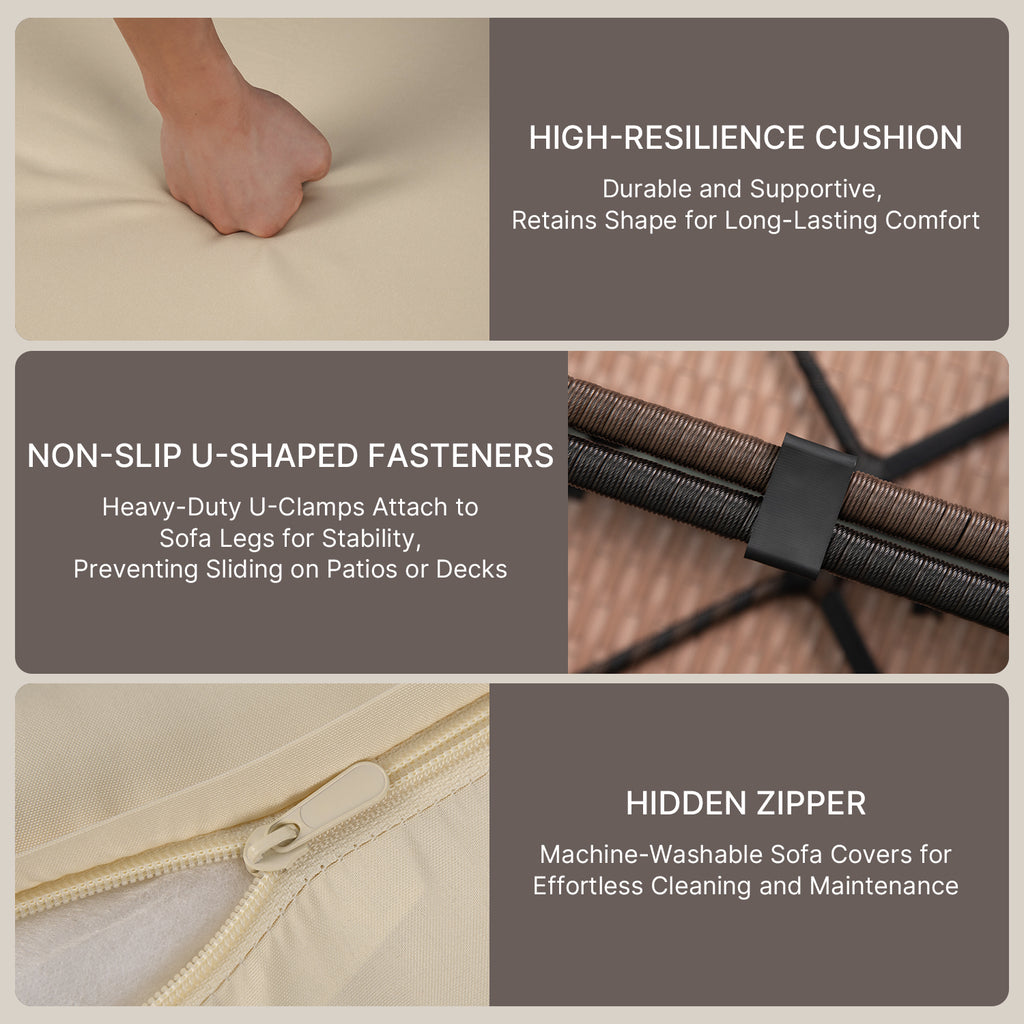 【Easy to Clean and Maintain】 Removable fabric covers are machine washable, and the surface features a stain-resistant coating for easy wiping. Metal parts require minimal upkeep, saving you time and keeping the set looking like new.