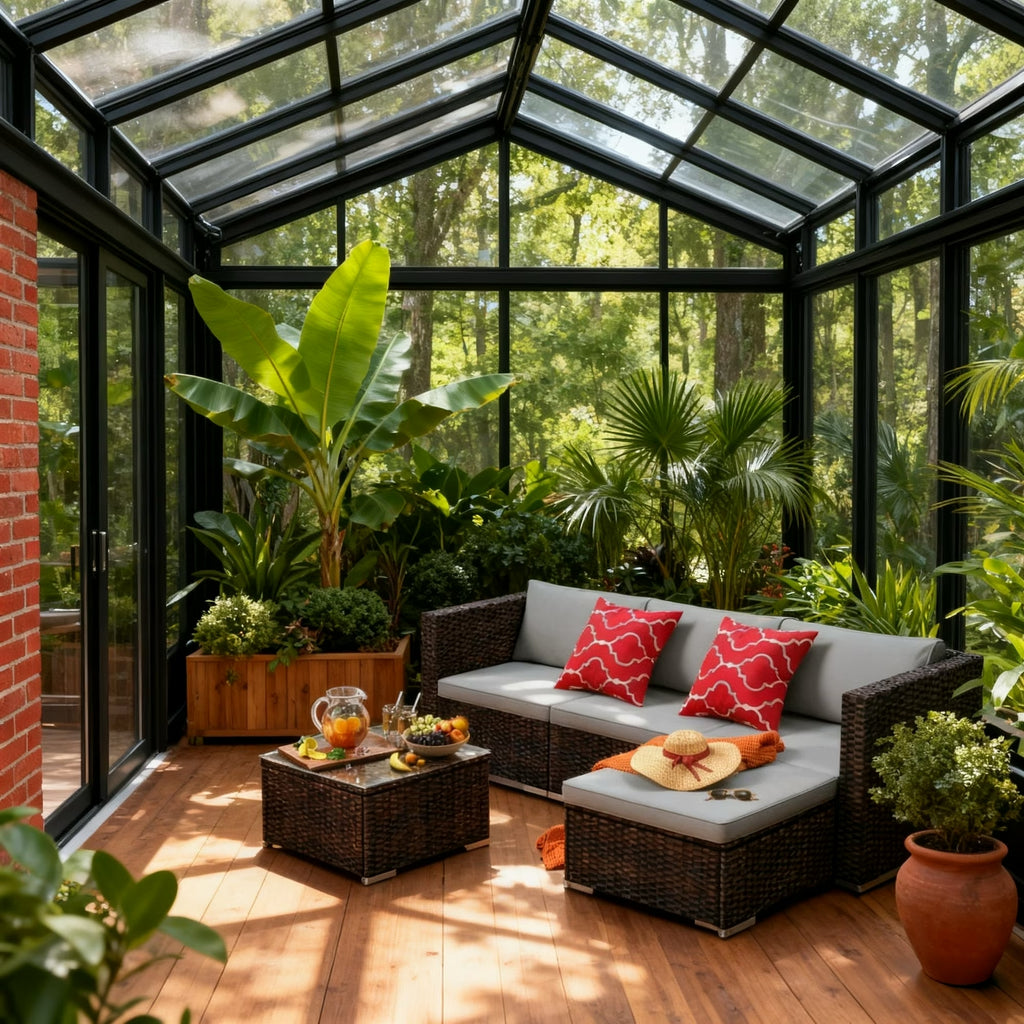 Material: PE Wicker, Tempered Glass, Alloy Steel Frame, Polyester, Sponge