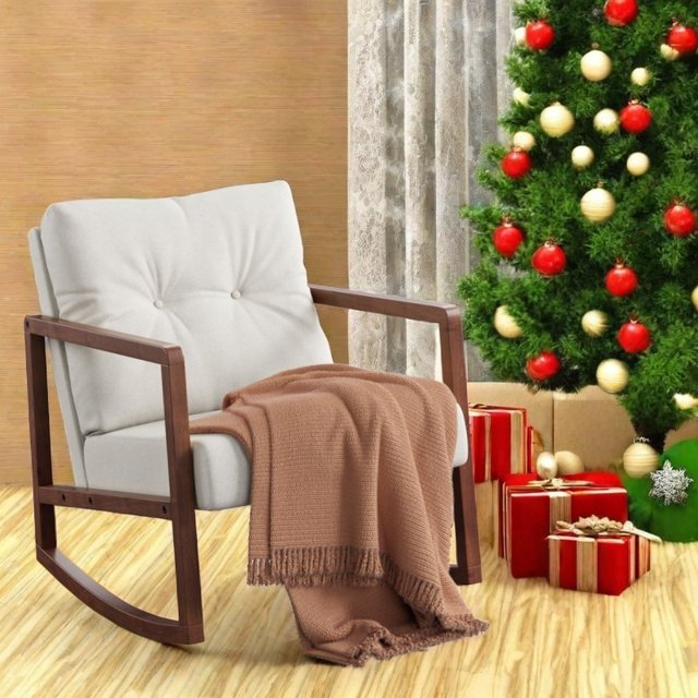 Rocking Chair, Lofka Recliner Chair for Living Room, Bedroom Accent Chair with Extra Back Pillow, Beige