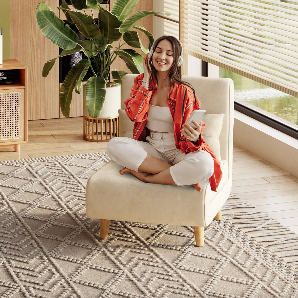Convertible Chair Bed Futon Sofa with Adjustable Backrest, Accent Chair for Apartment, Bedroom, Office - White