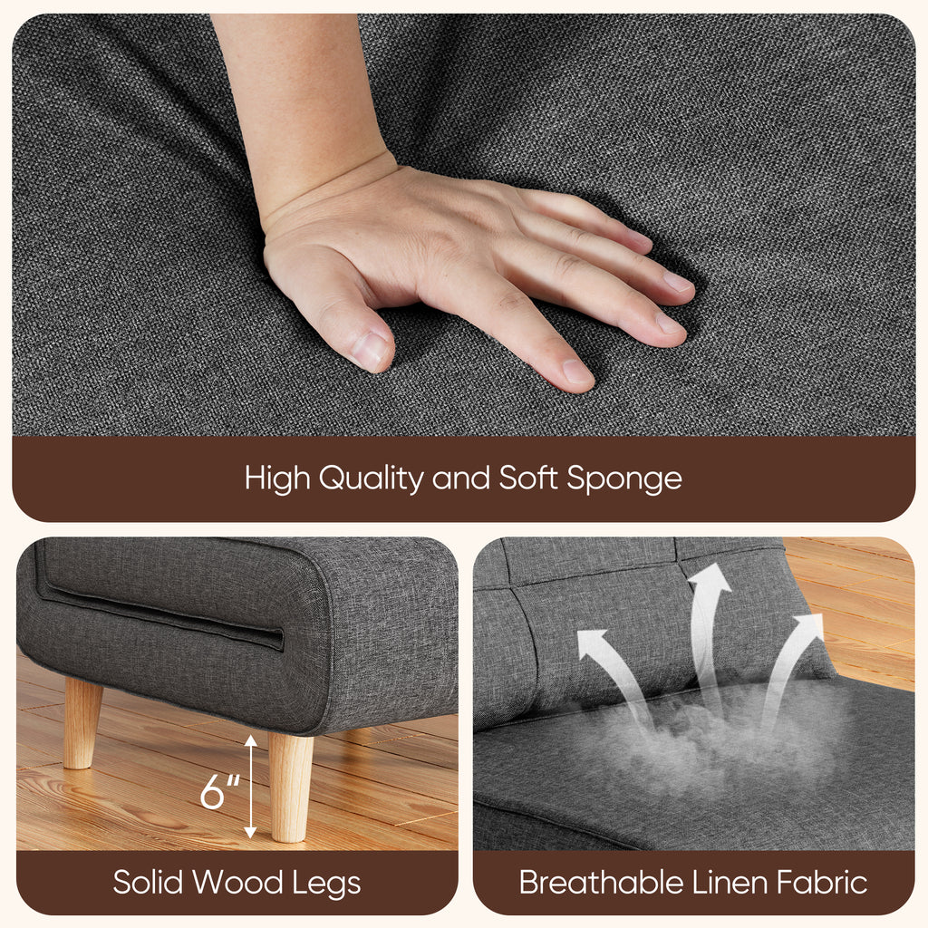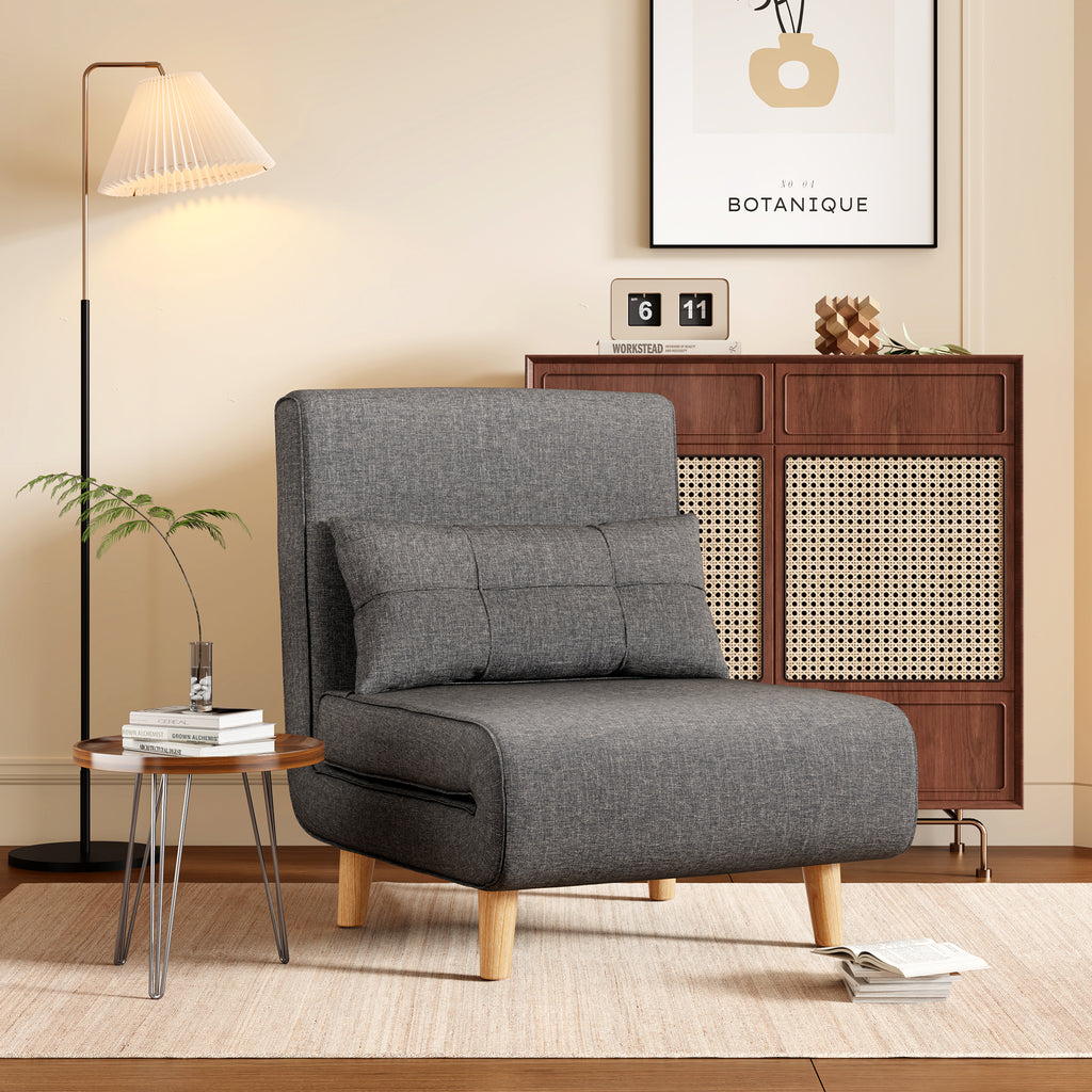 Convertible Chair Bed Futon Sofa with Adjustable Backrest, Accent Chair for Apartment, Bedroom, Office - Dark Grey