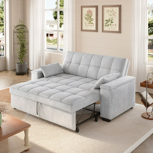 Sofa Cama, 3 in 1 Convertible Couch Bed with Storage Armrest and Adjustable Backrest for Living Room, Light Gray