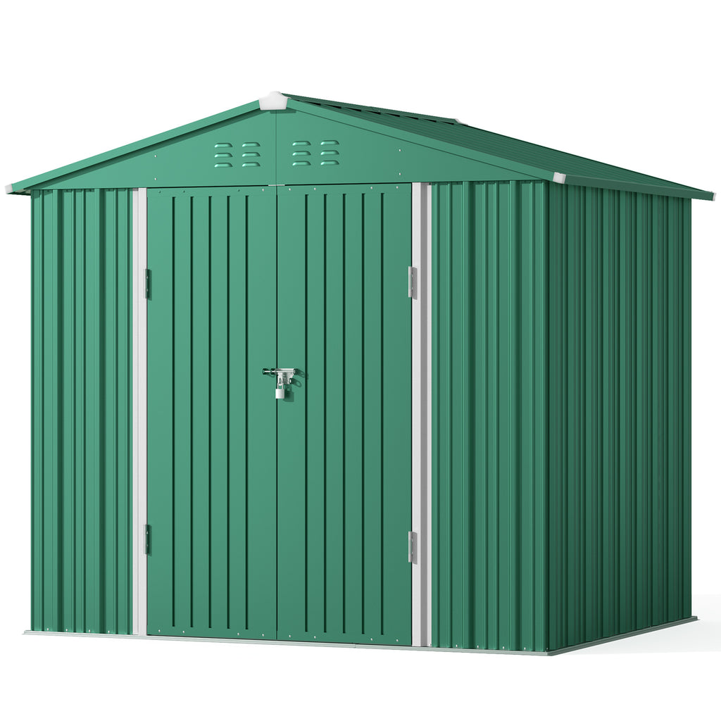Storage Shed, Lofka 8x6 FT All-Weather Metal Shed with Lockable Doors, Waterproof & Rust-Resistant for Outdoors, Green