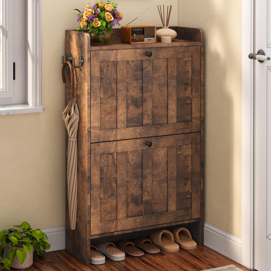 Aiho Shoe Storage Cabinet with 2 Flip Drawers, Narrow Shoe Cabinet with OPen Storage, Entryway Shoe Storage for Foyer, Hallway, Porch, Living Room, Balcony, Bedroom - Retro