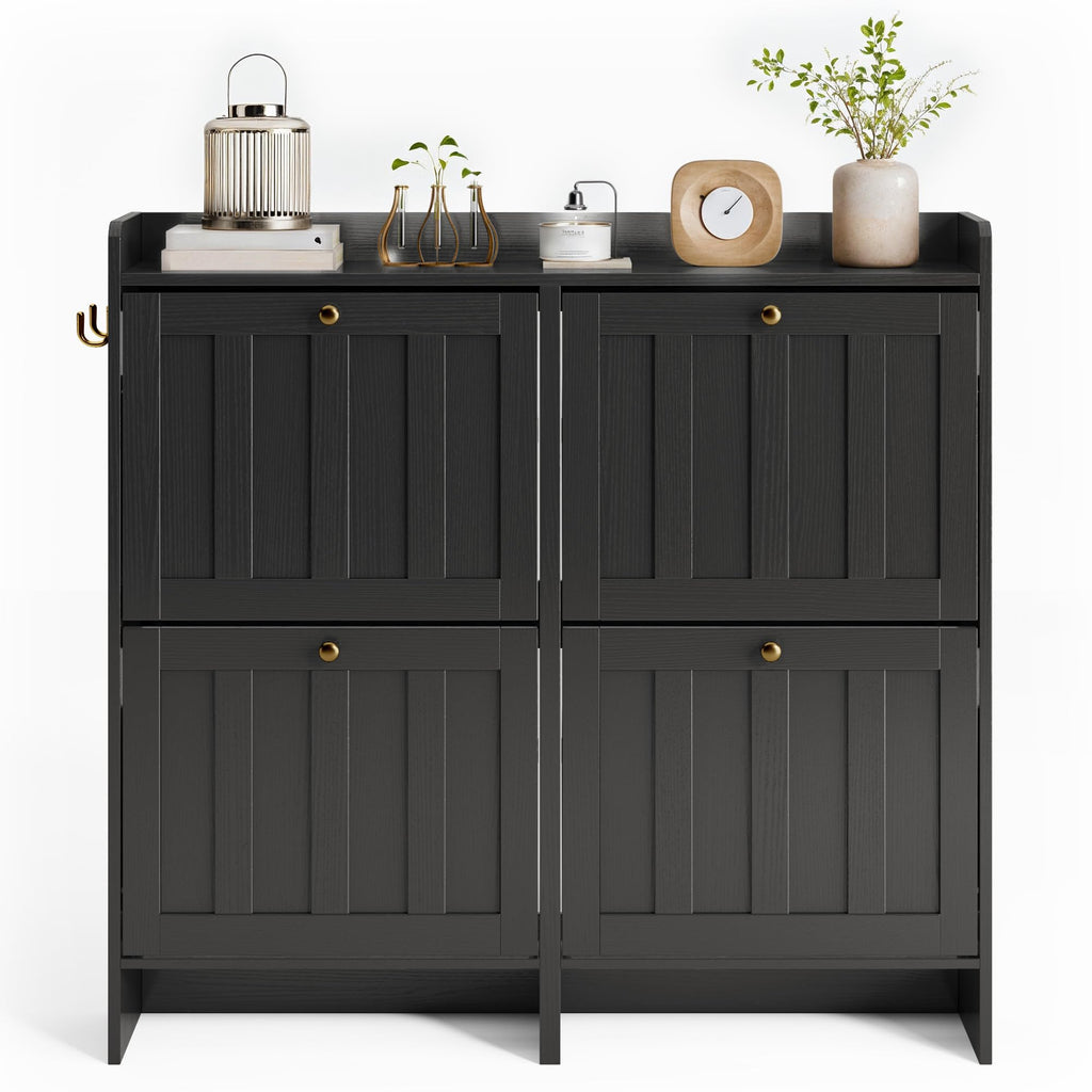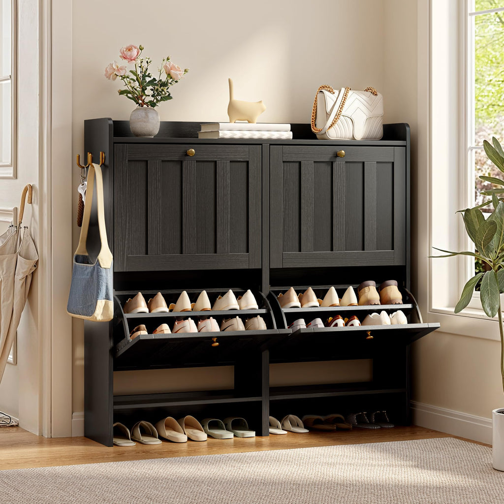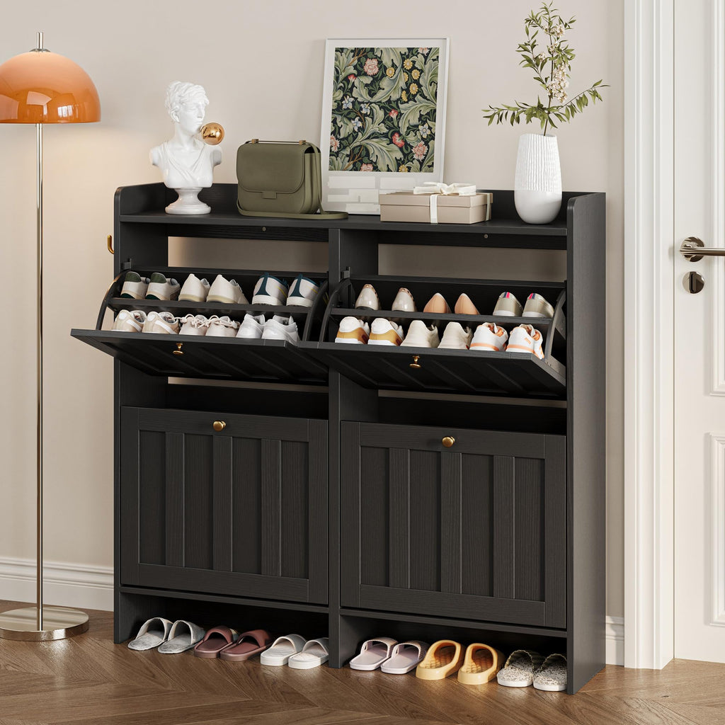 Aiho Shoe Storage Cabinet with 4 Flip Drawers, Narrow Shoe Cabinet with OPen Storage, Entryway Shoe Storage for Foyer, Hallway, Porch, Living Room, Balcony, Bedroom - Black