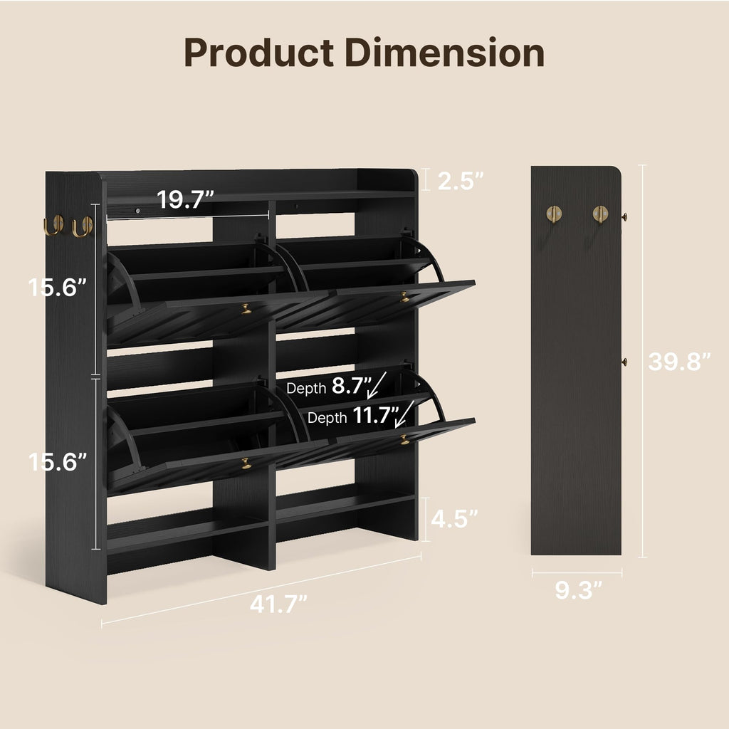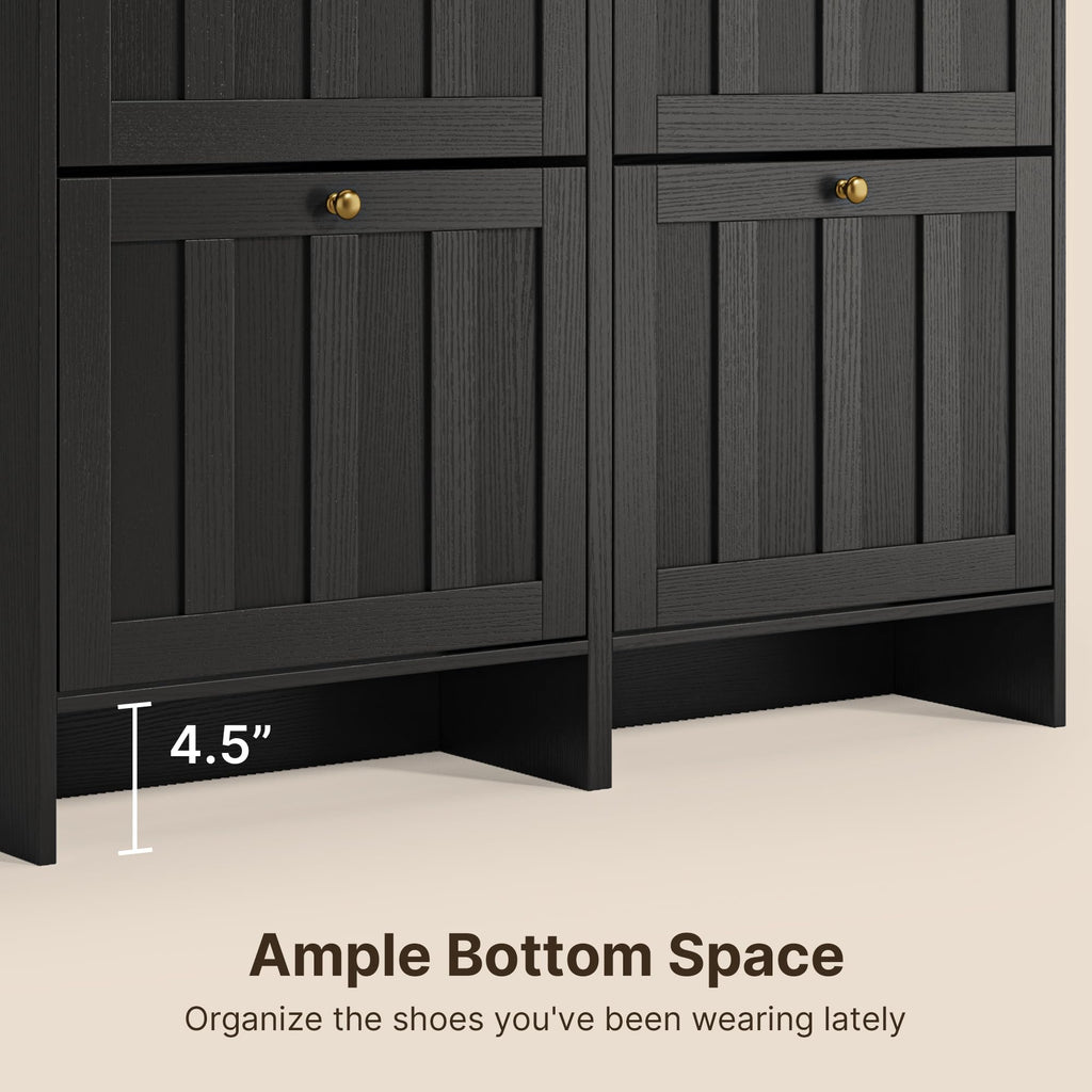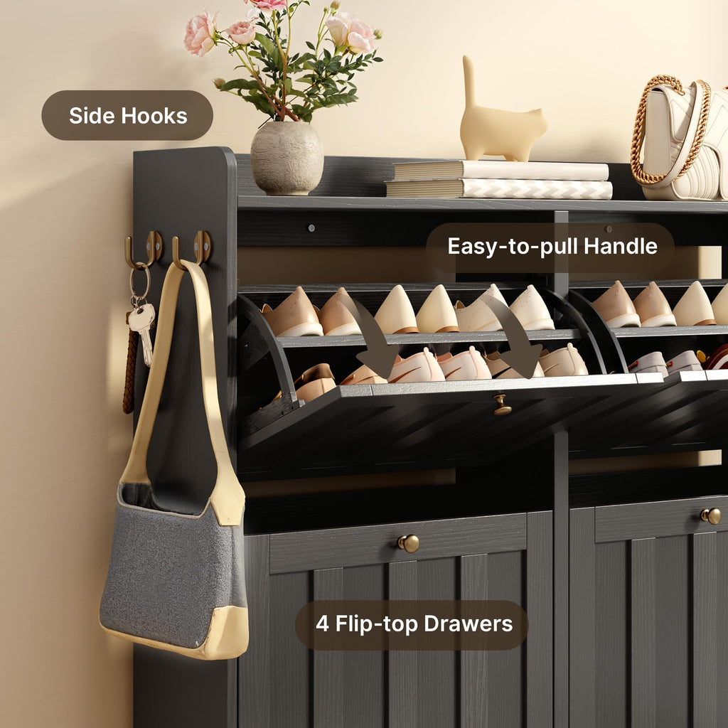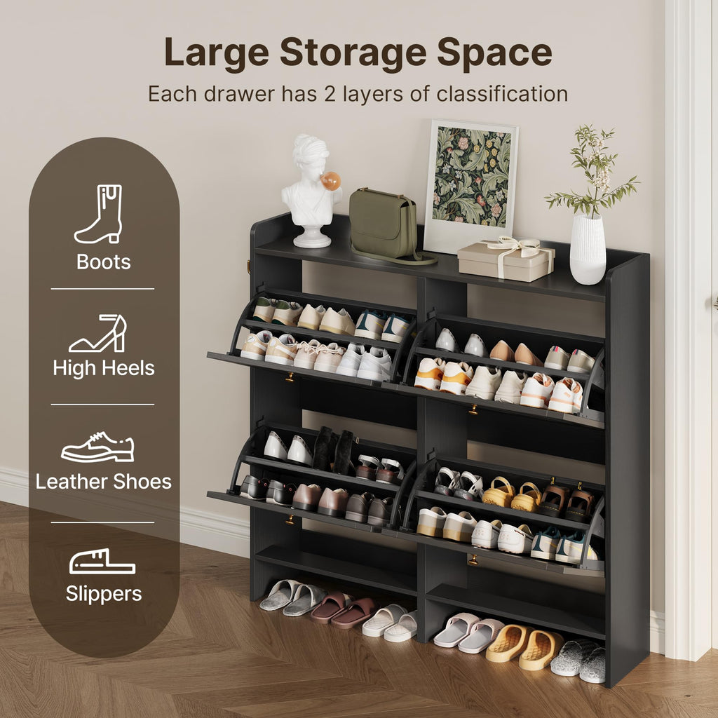 Aiho Shoe Storage Cabinet with 4 Flip Drawers, Narrow Shoe Cabinet with OPen Storage, Entryway Shoe Storage for Foyer, Hallway, Porch, Living Room, Balcony, Bedroom - Black