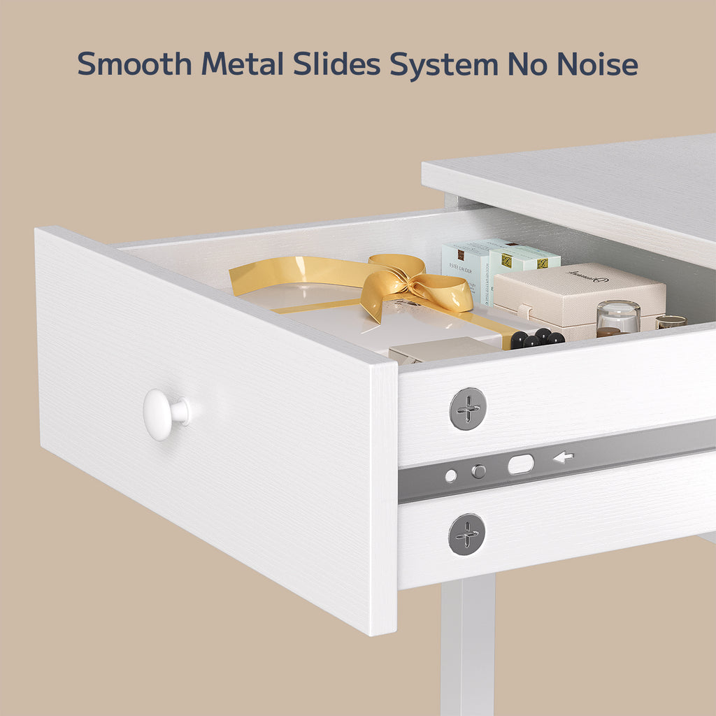 🗃️【Open Storage】It includes 2 open partitions and 3 open shelves, and two drawers. The shelves and partitions make full use of the vertical space to store cosmetics, perfumes, hair tools, jewelry, etc., keeping your room neat and organized and easily accessible.