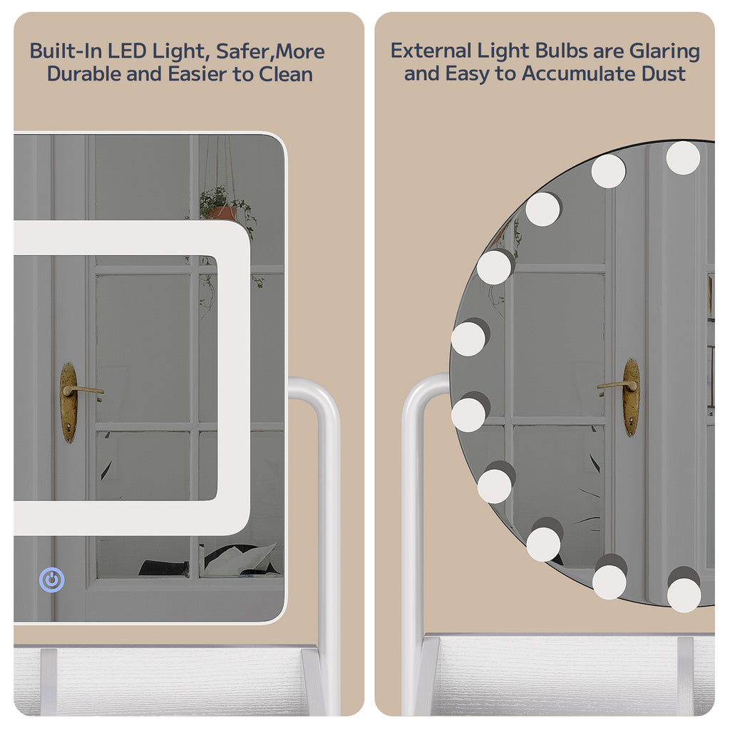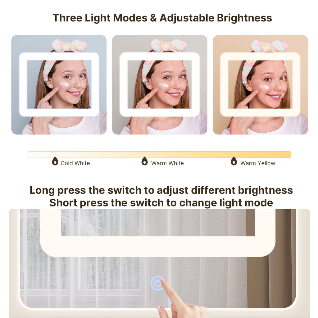 🌈【3 Adjustable Lighting Modes】Equipped with built-in LED adjustable touch lights, which are safer than regular bulbs. It has three color temperature settings: warm, natural, and cool, which can be easily adjusted with a long press. It provides perfectly calibrated lighting to meet your makeup needs in any lighting condition.