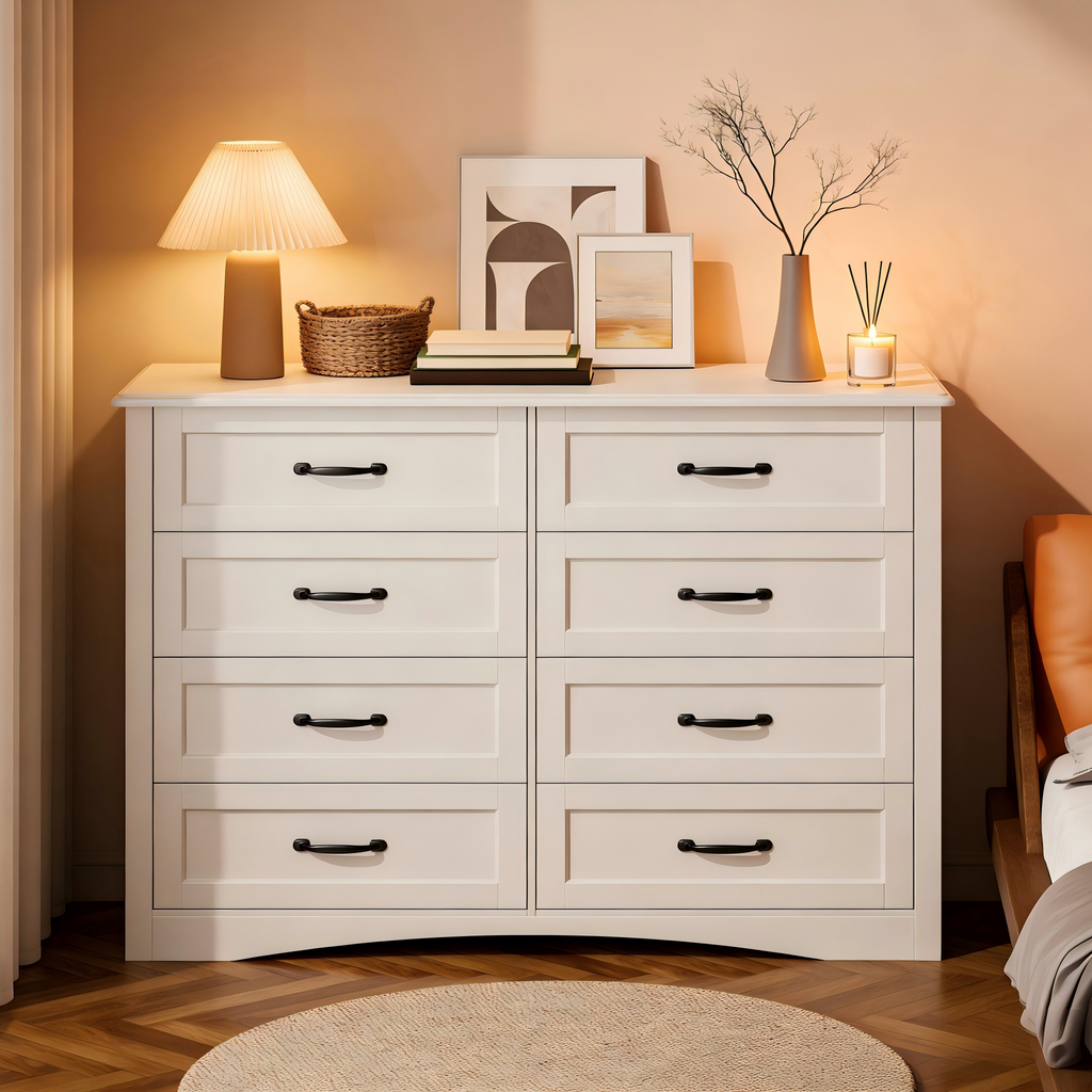 White Dresser for Bedroom, Lofka 47" Wide Luxury 8 Drawers Dresser with Black Metal Handle, Smooth Gliding, Easy Assembly, Anti-Tip