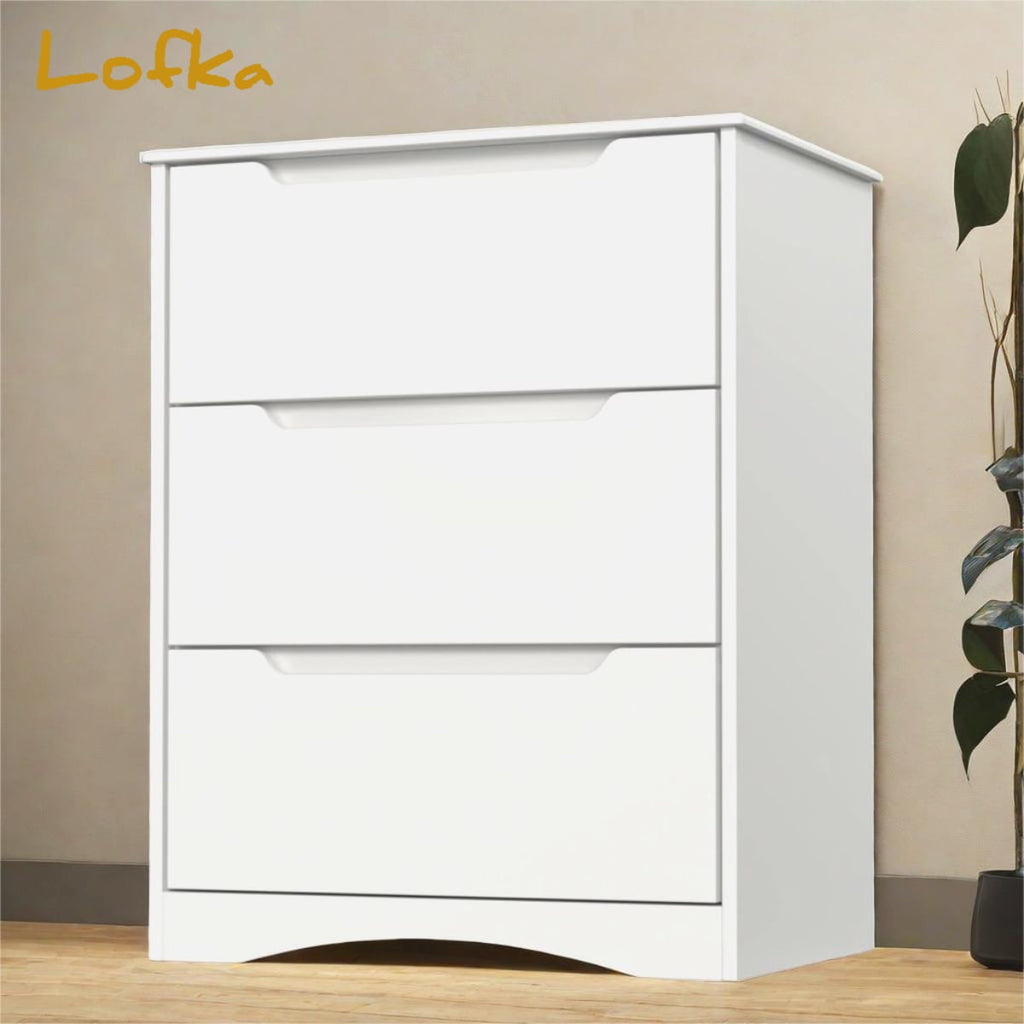 Lofka white dresser with 3 drawers is a perfect solution to save space and store scattered and small gadgets and it is a delicate design with a beautiful appearance, made of high-quality MDF board material, more durable, and non-toxic for your daily use.